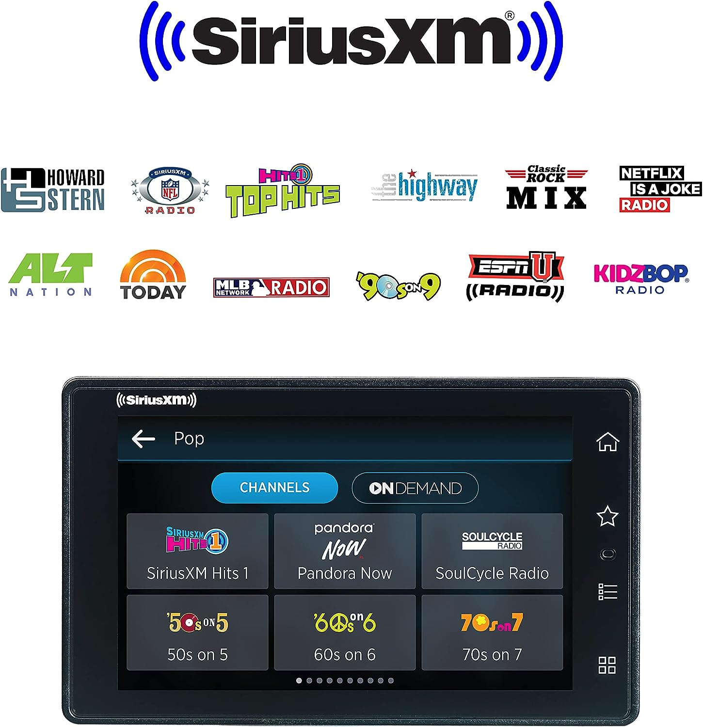 • EASY CONTENT CONTROL - Pause, rewind, and replay ad-free music, news, sports, talk, and comedy; use voice controls (3) to tune channels, explore categories, and discover new content or use the full-color touch screen that displays album art, channel logos, and backgrounds