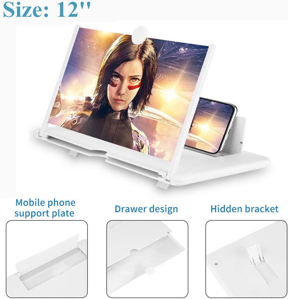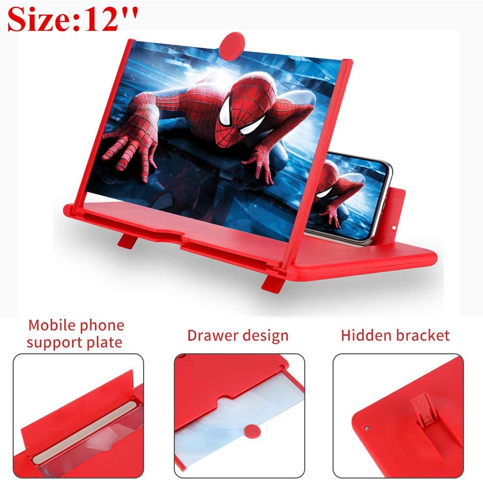 12'' 3D Phone Screen Magnifier – HD Magnifier Projector Screen Enlarger for Videos, Movies, Games – Foldable Phone Stand with Screen Amplifier – Supports All Smartphones (Black)