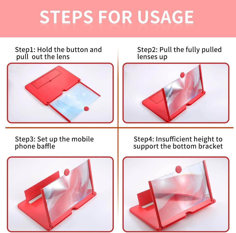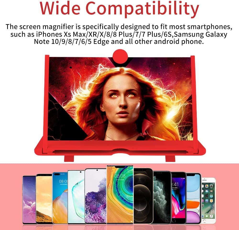 • 【WIDE COMPATIBILITY】 : The item compatible with smartphones and The screen size of most smartphones is less than or equal to 7 inches, so whether you have an iPhone or an Android phone, the magnifier projector screen is sure to work with your device. Moreover, the screen magnifier required no battery.