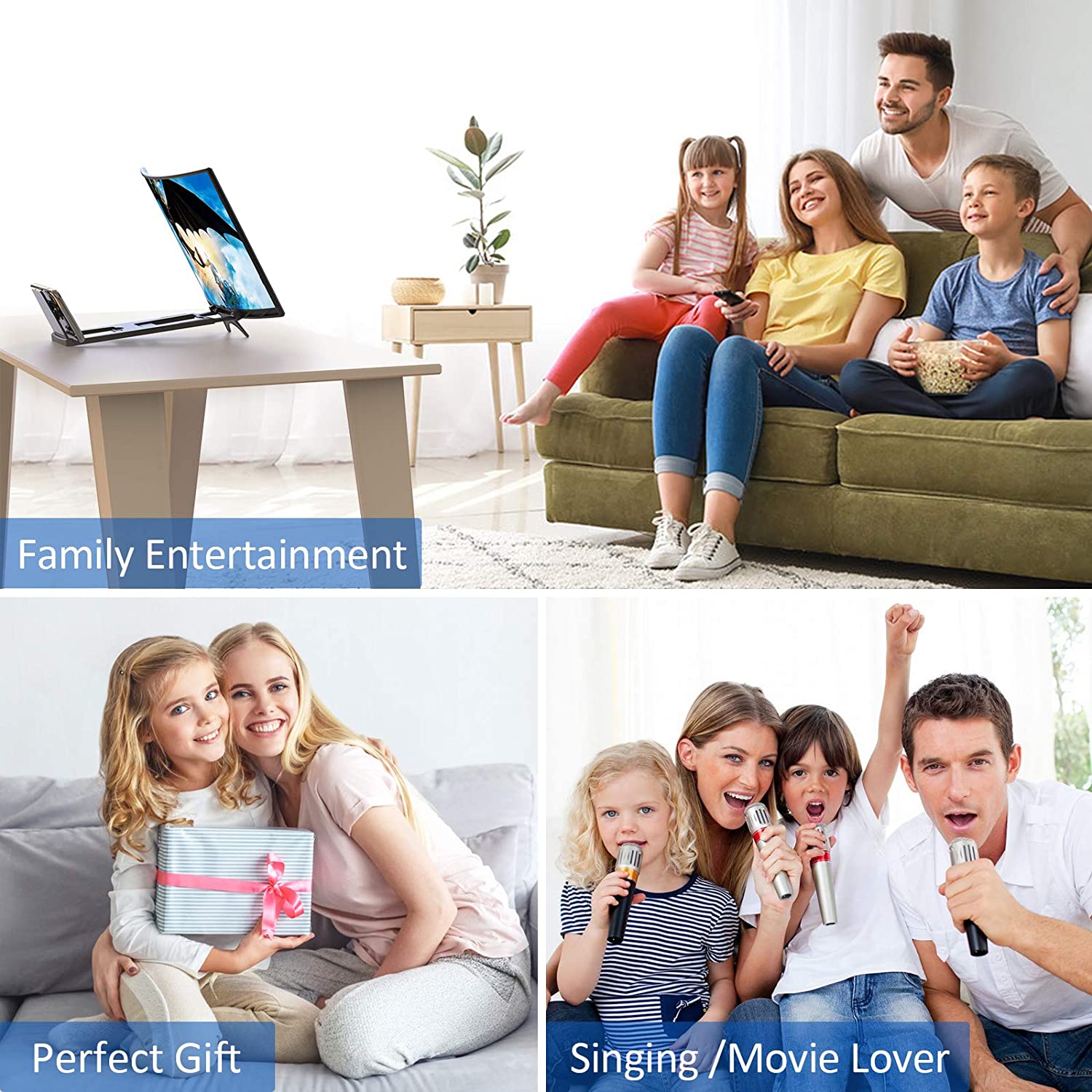 • 【Hight Quality Fresnel Lens and HD Zoom】- The upgraded 3d phone projector adopt fresnel lens ,HD zoom optical and blue-ray radiation protection technology, to provide high-definition image and reduce visual fatigue,the screen is more clear than other screen at the market. Even if you force the screen to flatten, but when you let go,The screen will still be restored to a curved screen.