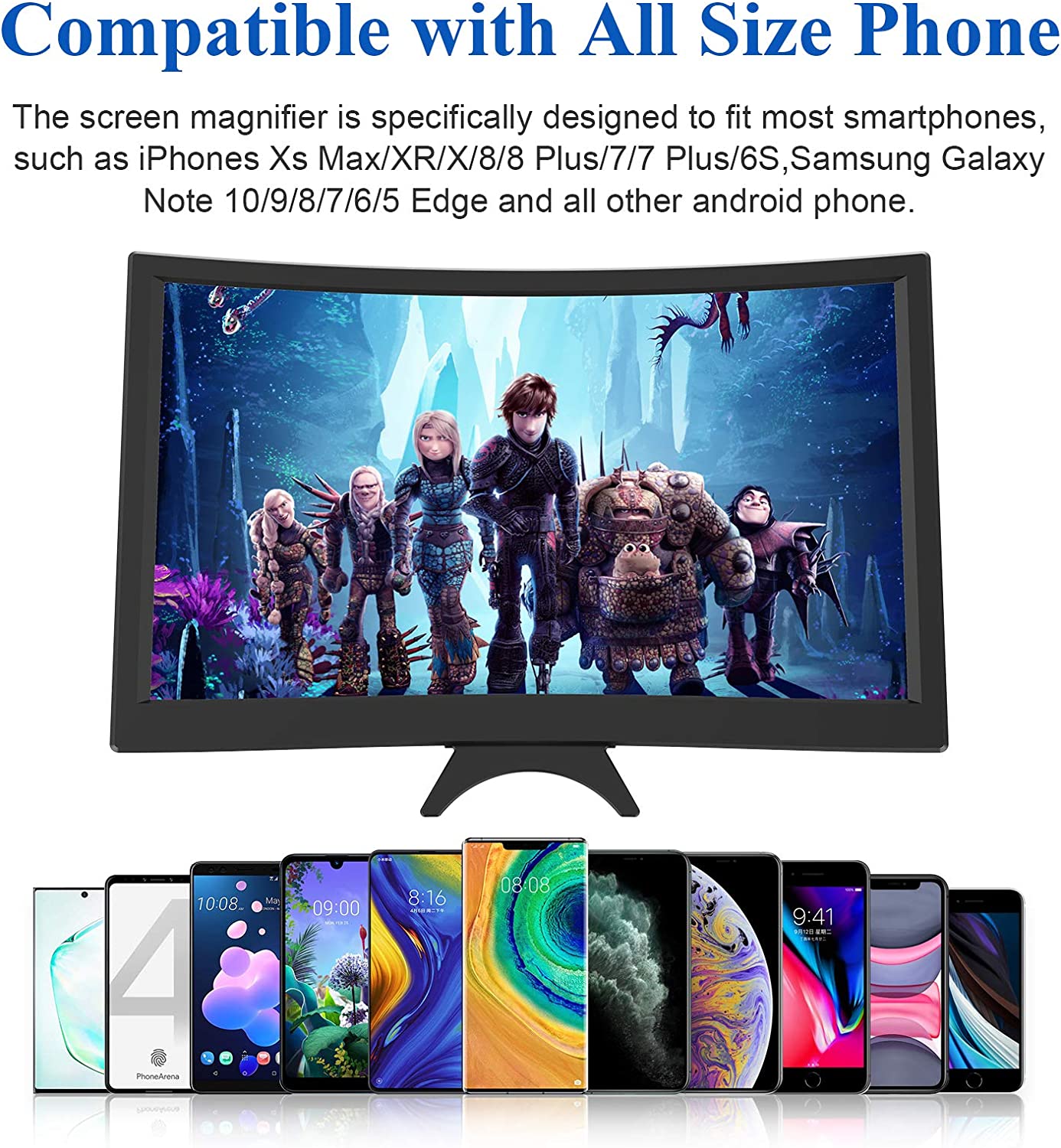 • 【Compatible With Your Device】- The screen magnifier is specifically designed to fit most smartphones, such as iPhones Xs Max/XR/X/8/8 Plus/7/7 Plus/6S, Samsung Galaxy Note 10/9/8/7/6/5 Edge Android phone smartphones.