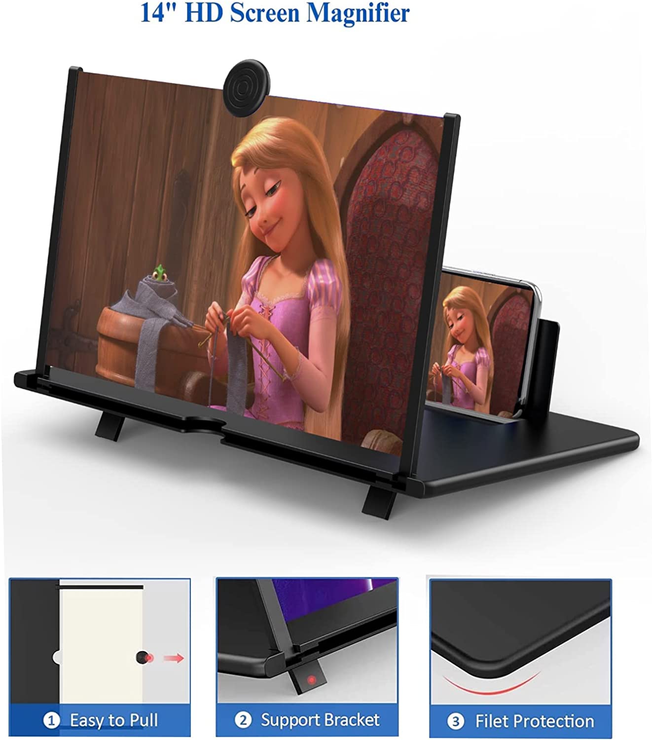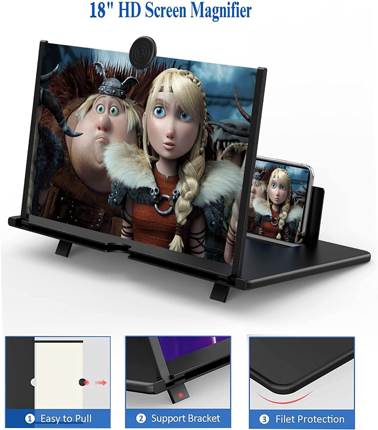 • 【2022 New Upgraded Version】 - 16 Inch Smartphone Screen Magnifier: Uses a 16-inch screen with high-resolution optical technology. Magnify your smartphone screen 4-5 times to keep the distance from your smartphone and protect your eyes. No batteries needed. Perfect for watching movies, videos, and more on your phone.