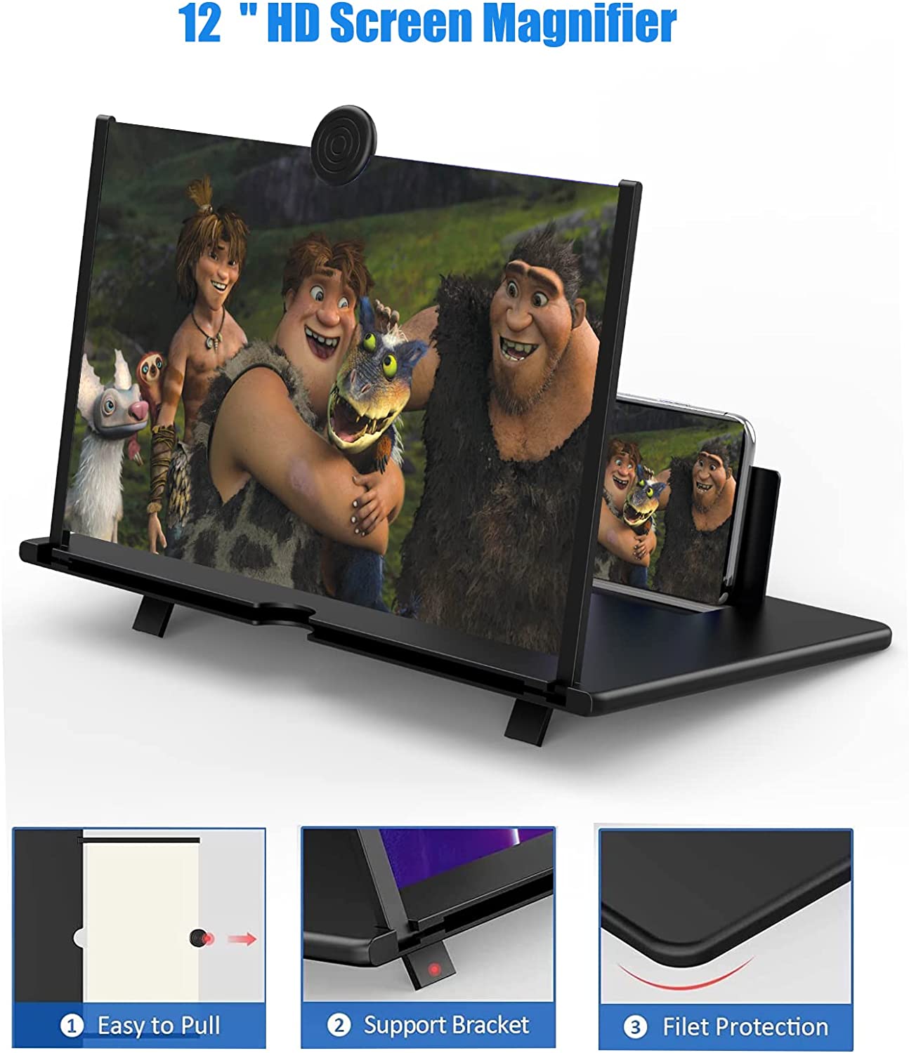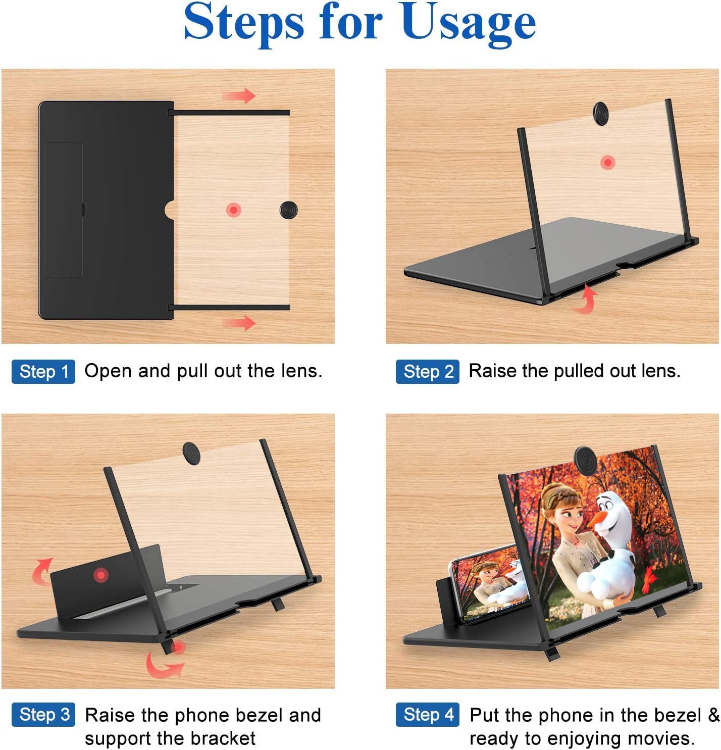 • 【3D HD Screen Amplifier】-The Phone screen amplifier is equipped with a 3D acrylic lens that is clearer and brighter than the ordinary lens.Against blue radiation to protect your eyes, reduce visual fatigue caused by prolonged focus on small screens. Note: Please do not use in places with direct sunlight as light or objects reflected in bright places. To protect your eyes, we recommend watching it from 2-2.5m away.
