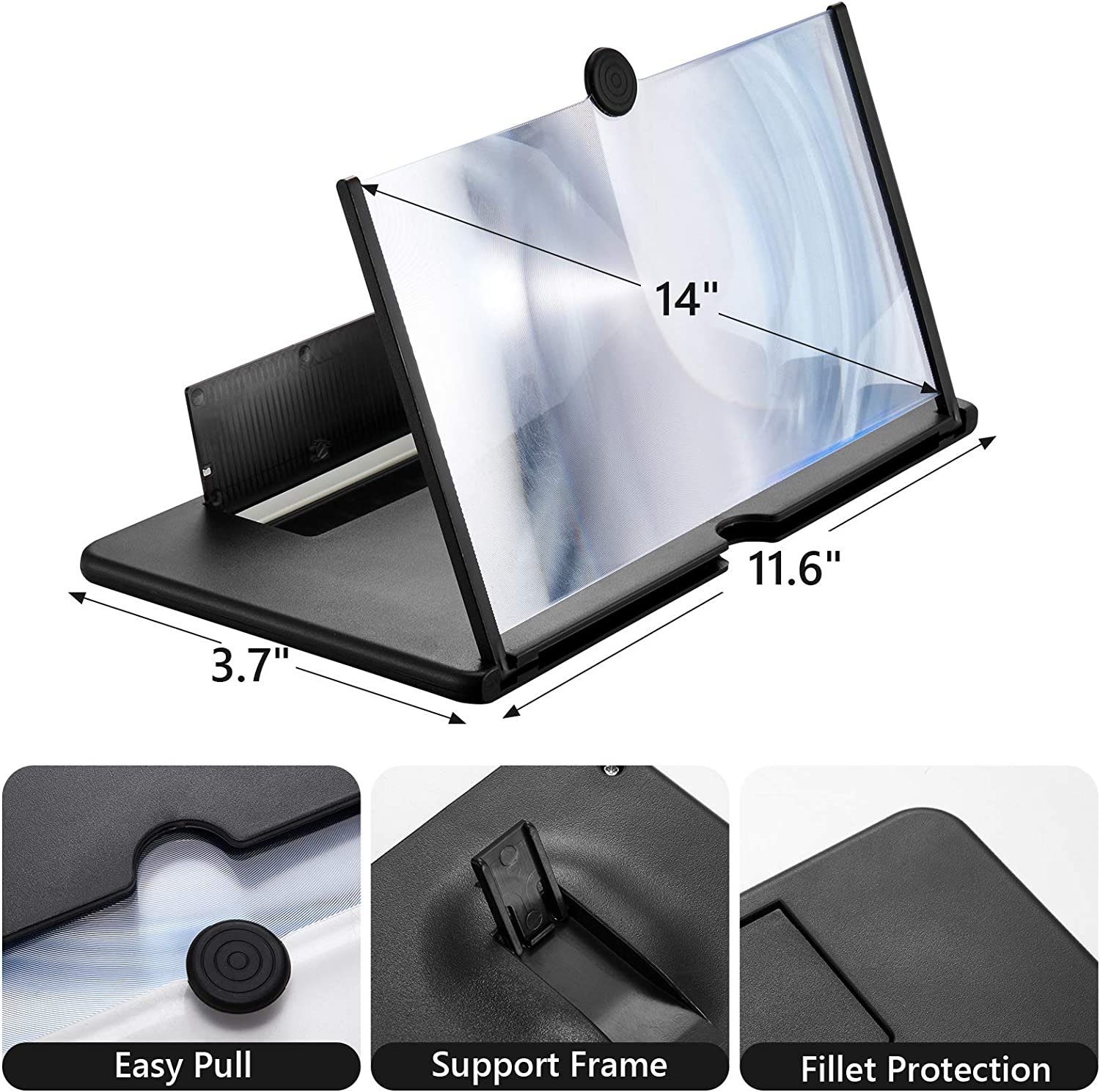 Then our screen magnifier is perfect for you. Keep you away from your phone. Let you free your hands and experience cinema-like visual effects. The 3D screen magnifier adopts high definition zoom optical technology, Which can magnify the screen 3-4 times without distortion. The cell phone magnifier is small and convenient, You can easily fold it and carry it with you, Allowing you to experience The best visual experience anytime and anywhere.