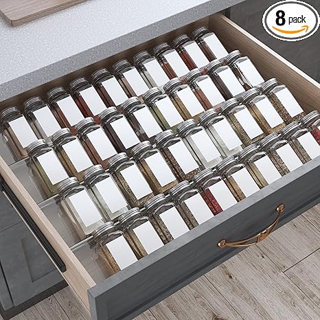 Antimbee Spice Drawer Organizer, 4 Tier- 8 Pack Kitchen Spice Rack Tray for Drawer, Acrylic Seasoning Organizer Rack Expandable From 13" to 26", Holds up 56 Spice Jars (Jars not Include)