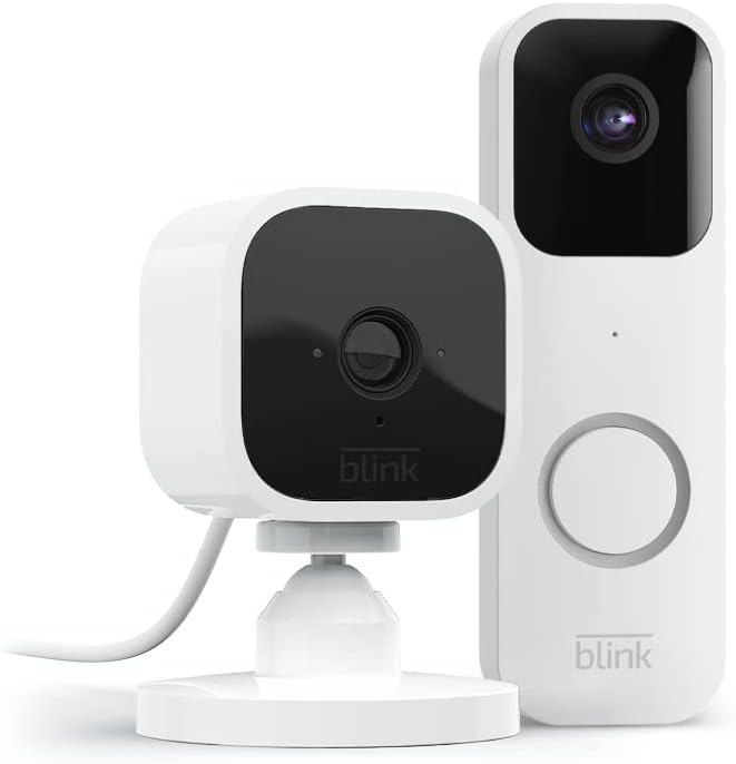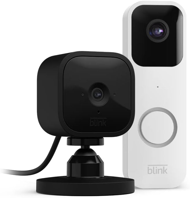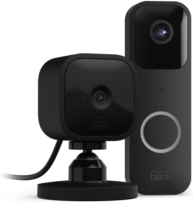 Blink Video Doorbell (Black) + Mini Camera (White) | Two-Way Audio, HD Video, Motion and Chime Alerts | Works with Alexa