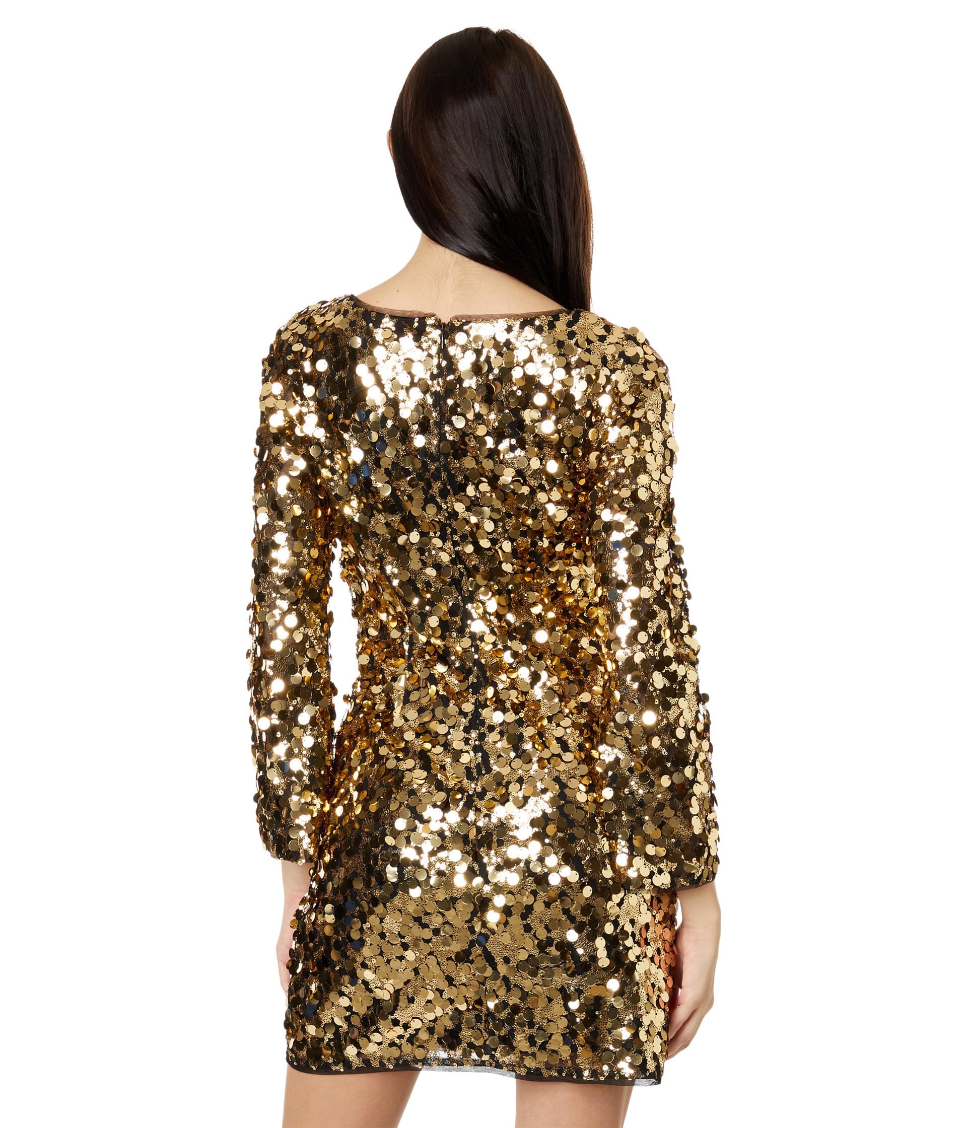 Details: Indulge in the elegant style of the Adrianna Papell Stretch Sequin Long Sleeve Sheath Dress. The V-neckline and long sleeves create a refined and stylish look, making it an ideal choice for formal events or parties. The all-over sequin fabrication ensures you shine from every angle, capturing the light with every move. The sheath silhouette flatters your figure, accentuating your curves in the most flattering way. Zippered closure on the center back. Flared sleeve cuffs. Mini-length design. Main: 100% polyester;Shell 2: 100% polyester;Lining: 100% polyester. Dry-clean. Imported.