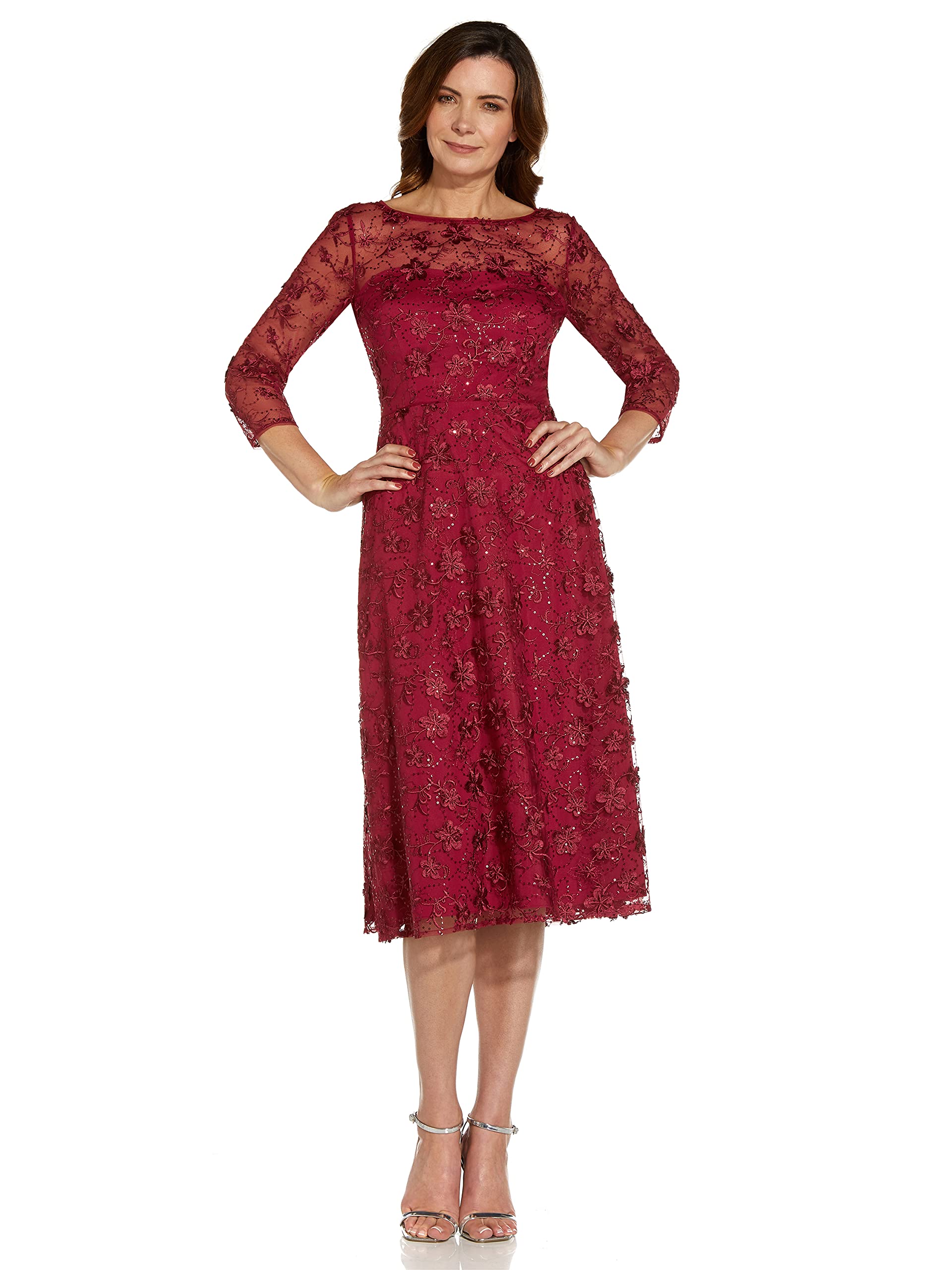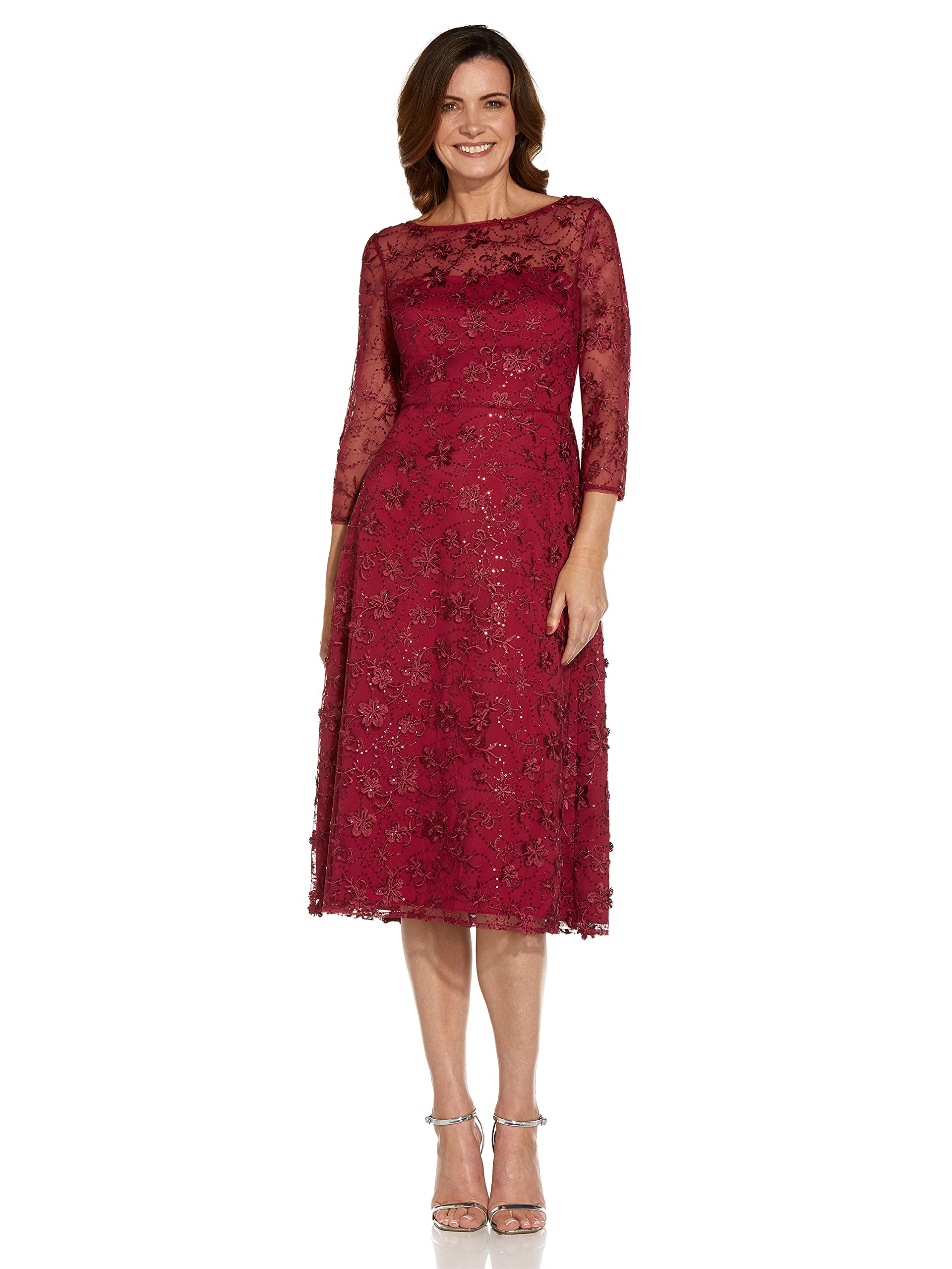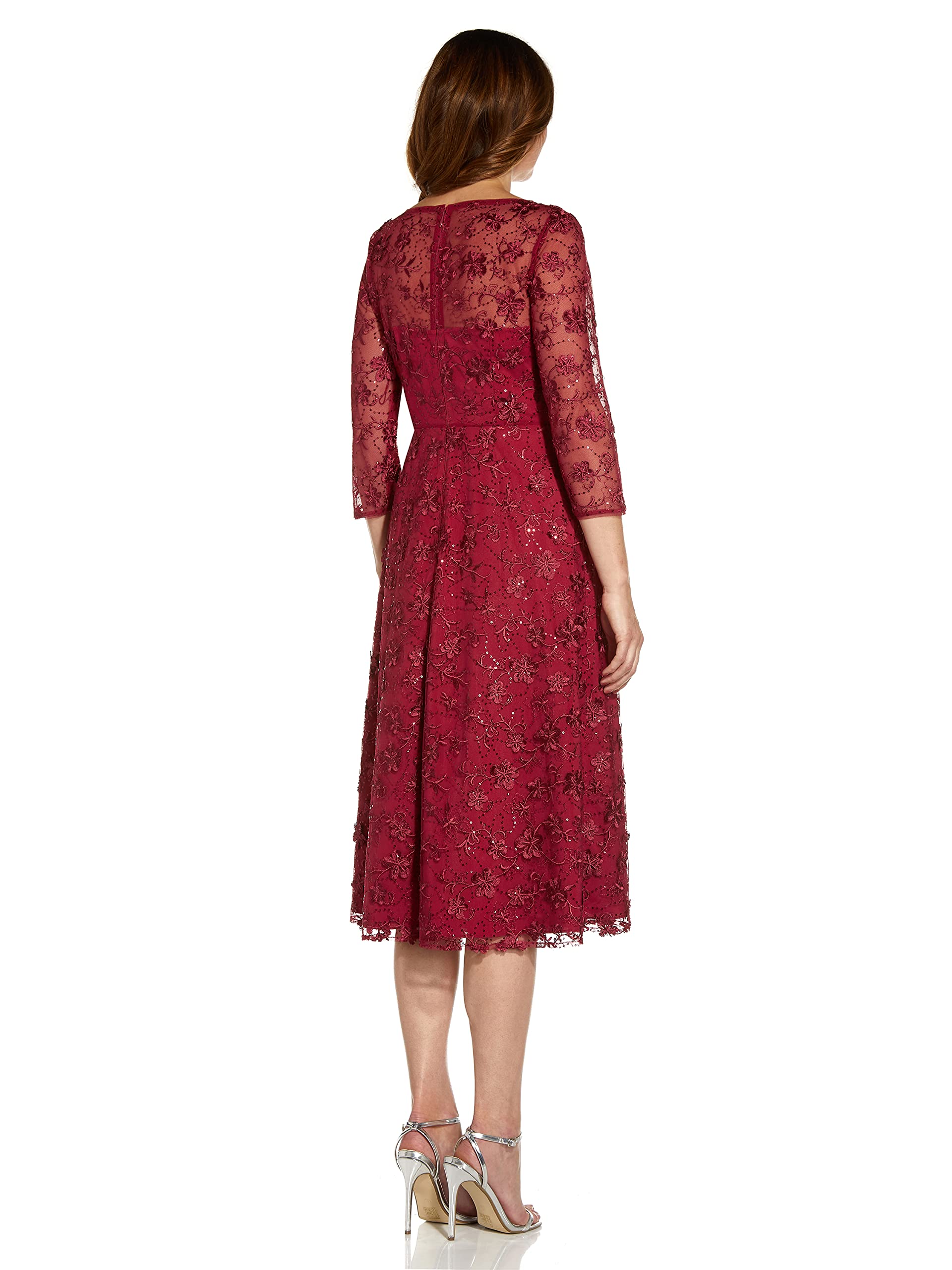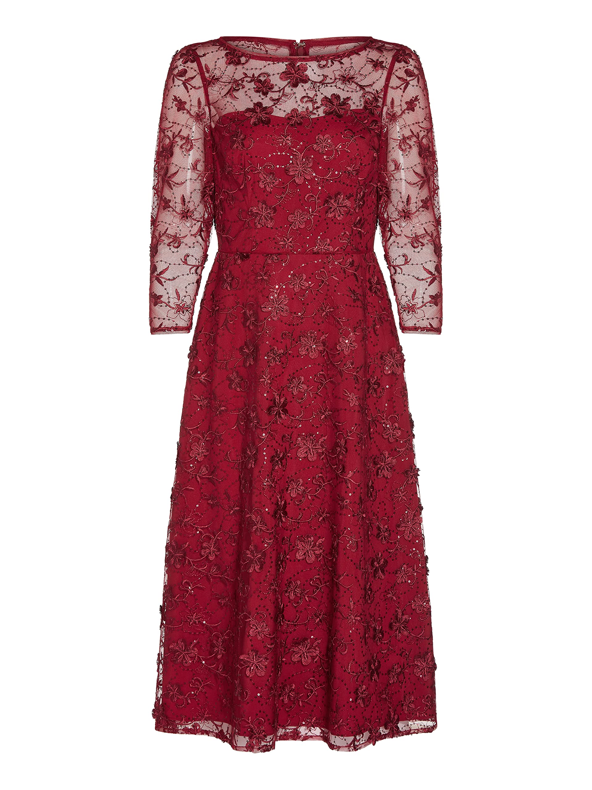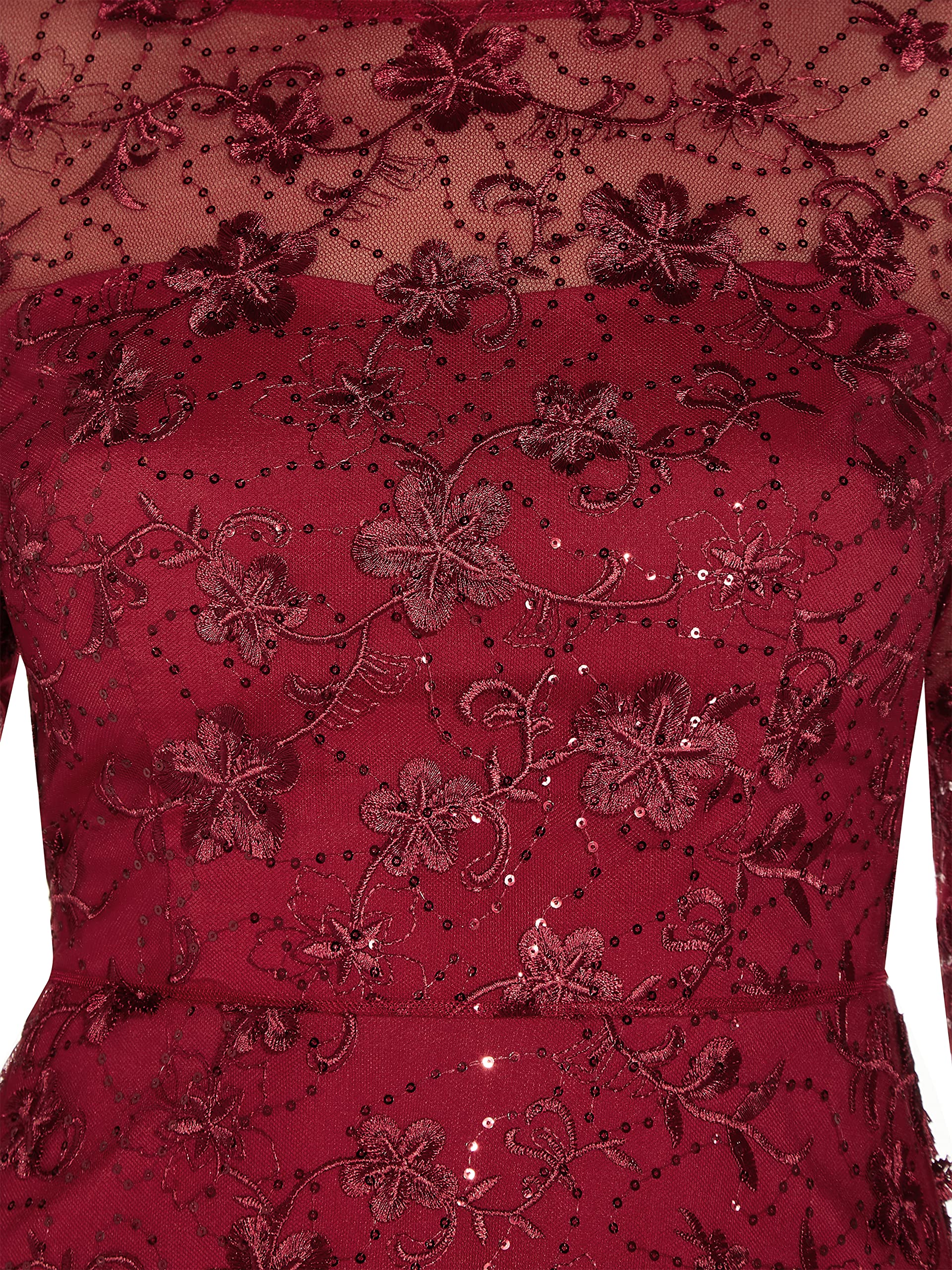 Details: 3D Floral Sequin Embroidery Flared Midi Dress
