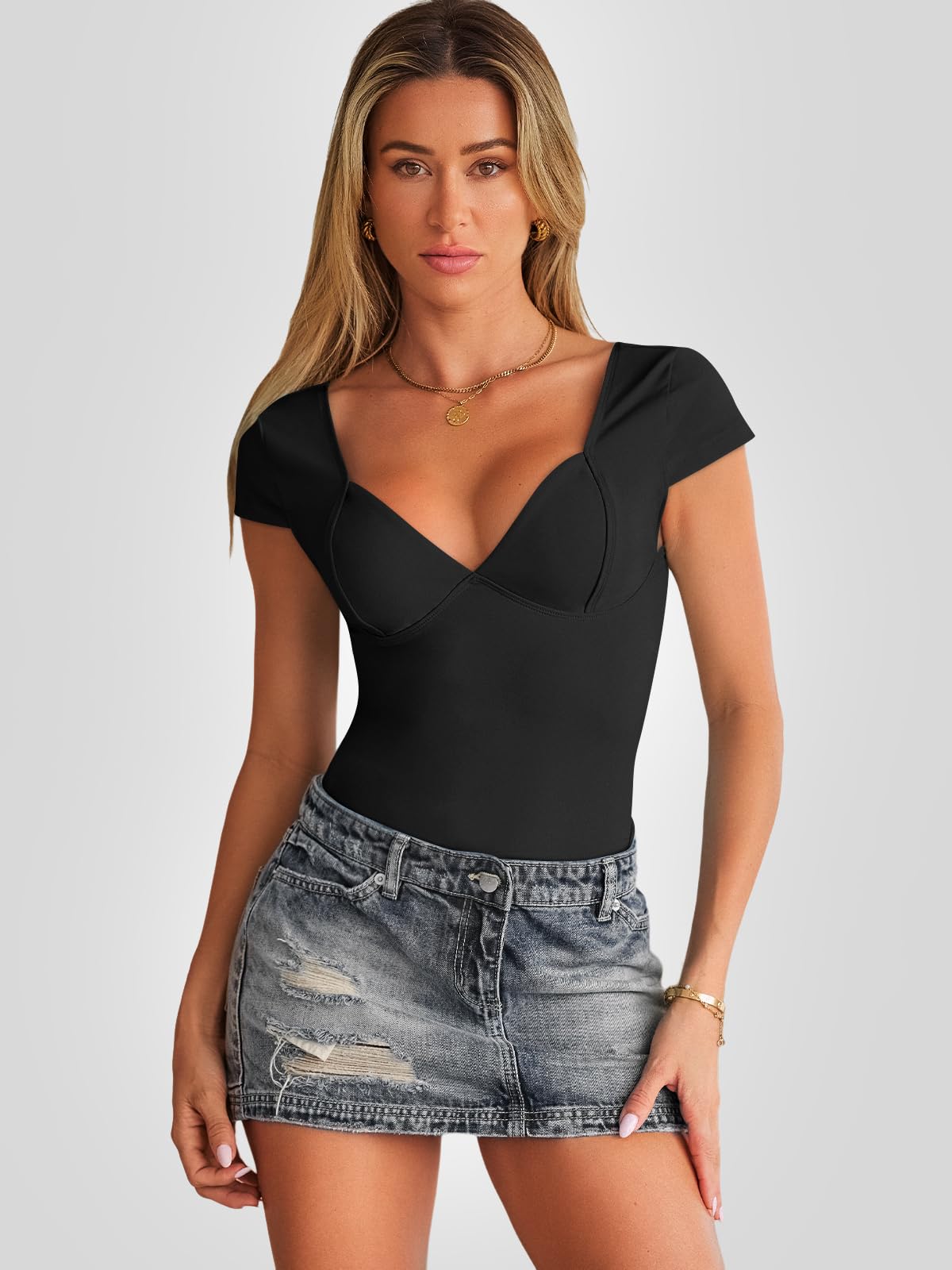 • Chic design: Double layer design on the chest, support and flatter your chests perfect,soft stretchy style,scoop back design,slim fit,featuring sexy low cut v neck,huge curves for a sleek and sexy look for summer 2024.