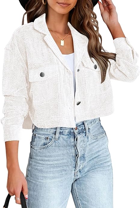 BTFBM Women's Corduroy Cropped Jacket 2024 Winter Fall Lapel Button Down Casual Short Shacket Jackets Coats with Pockets