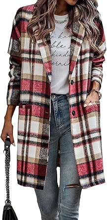 ZOCAVIA Women's Flannel Jackets Shacket Plaid Long Sleeve Button Up Coats Winter Coats Outfits for Women Spring Fashion Cloth