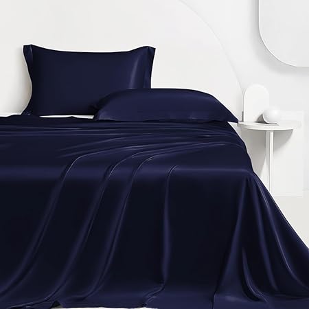 AL AHMEDANI LINEN Blue Satin Sheets Queen - Luxurious 4-Piece Queen Silk Sheets Set - Silky Smooth, Deep-Pocket 1 Fitted Sheet, 1 Flat Sheet, 2 Pillowcases
