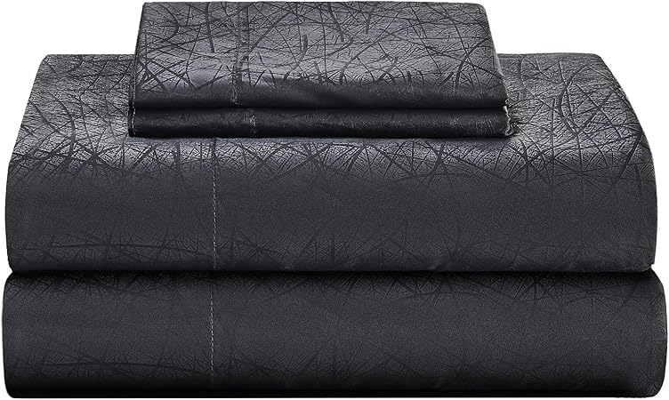 Luxury Satin Sheets Full Size - 4-Piece Embossed Bed Sheet Set with Deep Pocket Fitted Sheet, Cooling Silk Feel, Includes 1 Flat Sheet, 1 Fitted Sheet, 2 Pillowcases