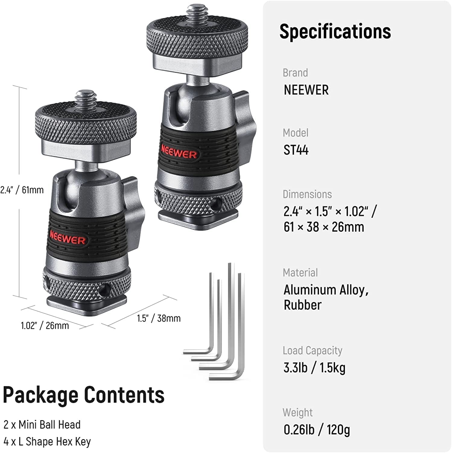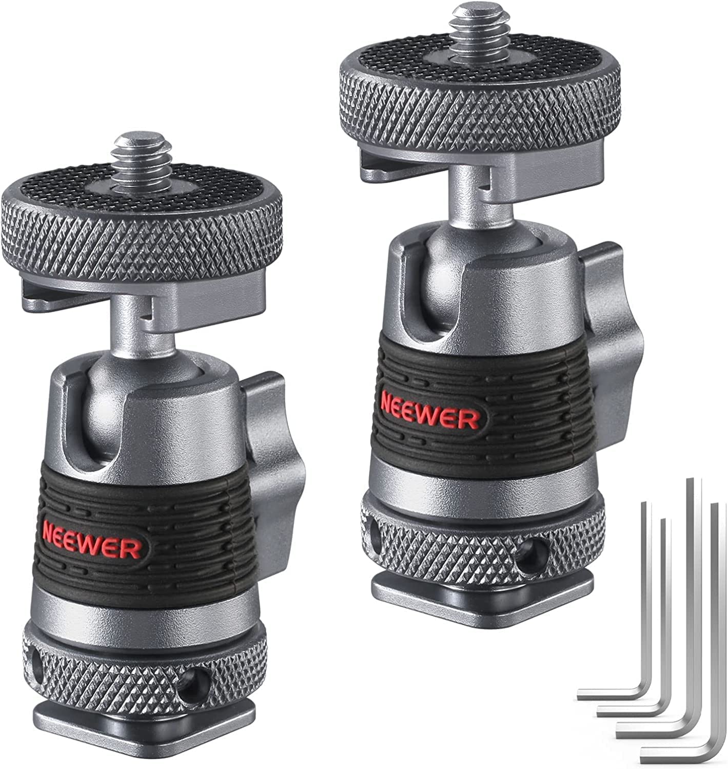 NEEWER Mini Ball Head with Removable Cold Shoe Mount and 1/4” Screw, Detachable Cold Shoe Base, 2 Way Installation Compatible with SmallRig Cage, DSLR Camera, Monitor, LED Video Light (2 Packs, ST44)