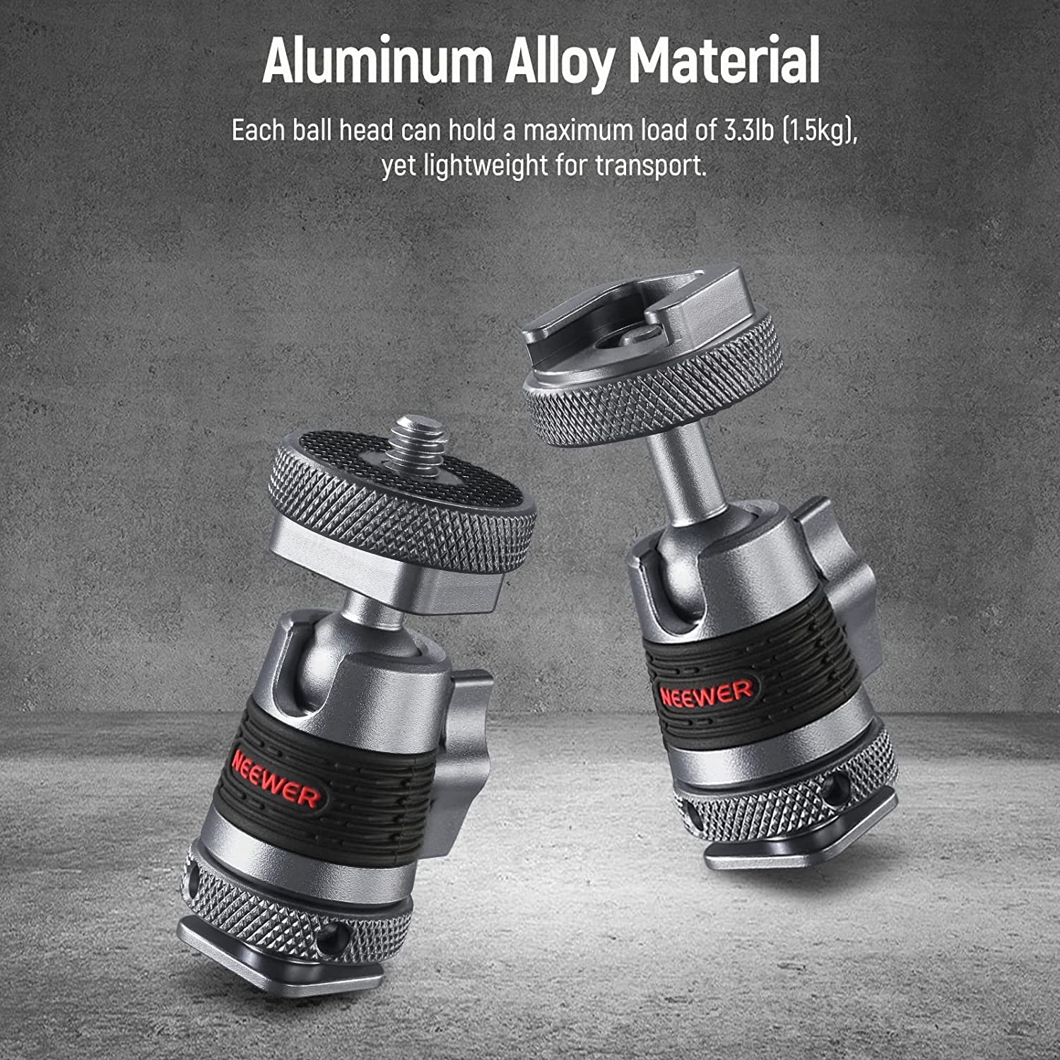 • 【Solid & Sleek Construction】 Made of aluminum alloy and rubber for a stylish look, the ball head is also sturdy enough to support a load of 3.3lb (1.5kg) and resist moisture and corrosion under any outdoor circumstance