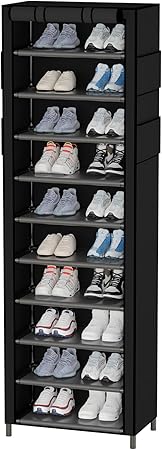 10 Tier Shoe Rack with Covers Narrow Sturdy Tall Shoe Rack Organizer Holds 22 Pairs Free Standing Storage Cabinet with Dustproof Cover Shoe Shelf for Closet Entryway Garage Hallway