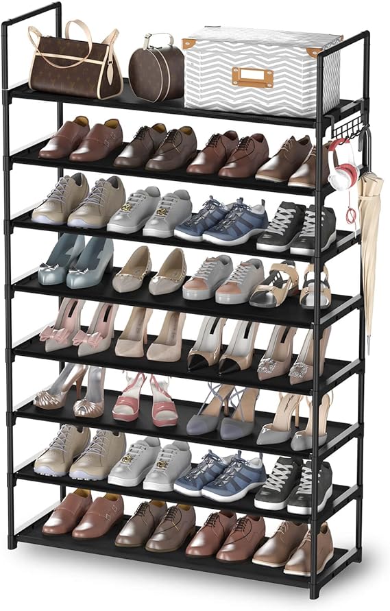 8 Tiers Shoe Rack Organizer, Stackable & Adjustable Non-Woven Fabric Shoe Shelf Storage Cabinet, Holds up to 32 Pairs for Entryway, Closet, Black