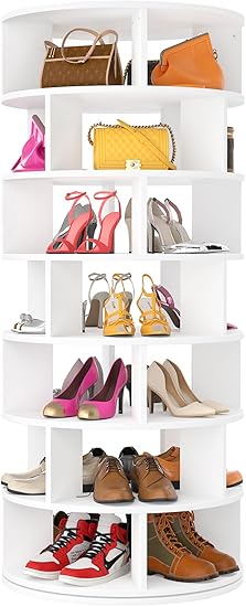Aheaplus Rotating Shoe Rack Tower, 7-Tier Spinning Shoe Rack 360 Revolving Shoe Rack Organizer for Closet, Display Round Storage Carousel Shoes Closet Organization, White