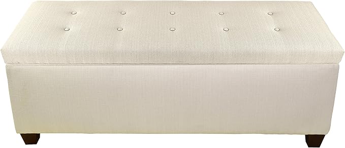 Button Tufted Shoe Ottoman Storage Bench for Bedroom or Entryway, Adjustable Wooden Inserts, Stores up to 36 Pairs, Easy-Open Hinged Lid, Large, Ecru