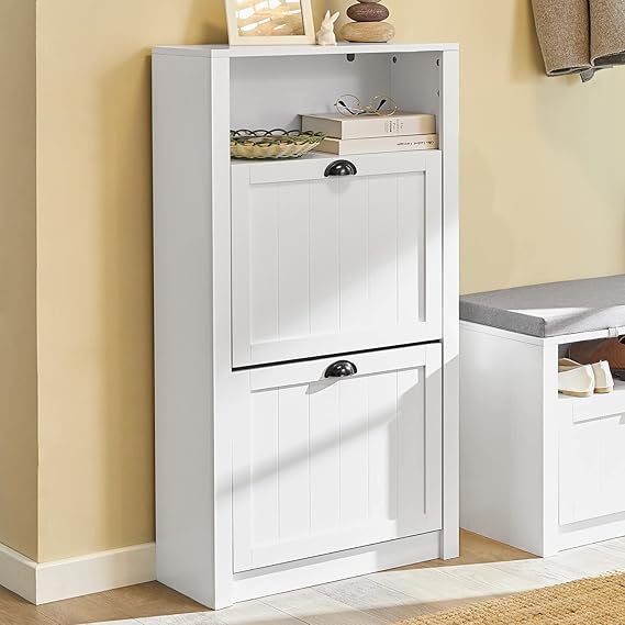 Haotian Shoe Cabinet with 2 Drawers Shoe Rack Shoe Storage Hidden Shoe Storage Compartment, White, FSR87-K-W, 9.4" D x 23.6" W x 43.3" H