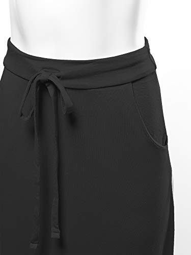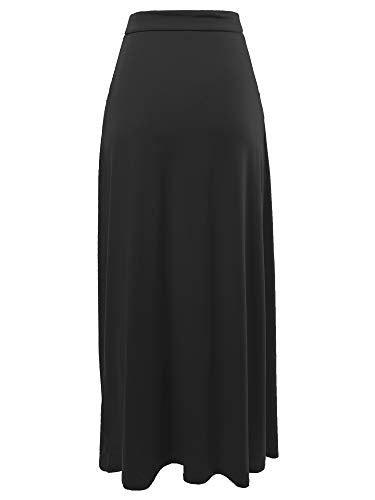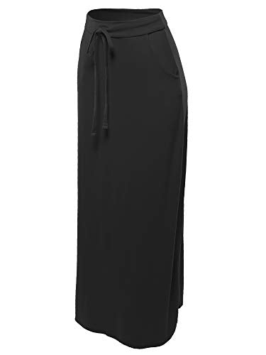 A2Y Drawstring Waist Side Pockets Rayon Maxi Skirt Black L