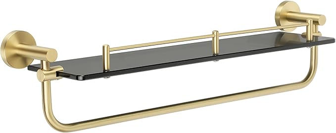 Alise Bathroom Shelves Glass Shelf with Bar, Wall Mount Floating Shelves for Bathroom, Tempered Glass Rack Holder Storage Organizer, GDL8600-GB SUS 304 Stainless Steel Gold and Black Finish