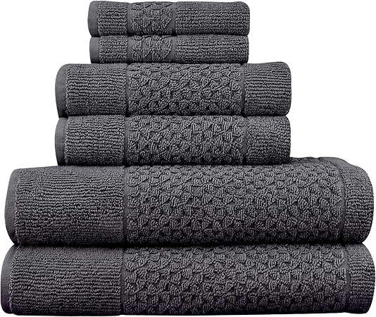 Classic Turkish Towels CTT - Luxury 6 Piece Towel Set, 100% Turkish Cotton, Quick Drying, Highly Absorbent & Comfy, Includes 2 Bath Towels, 2 Hand Towels & 2 Washcloths | (Grey)