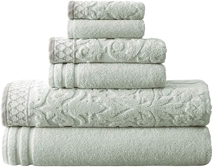 Modern Threads 6-Piece Damask Jacquard/Solid Ultra Soft 550GSM 100% Combed Cotton Towel Set with Embellished Borders [Light Blue]