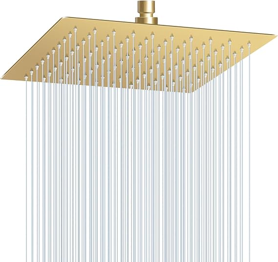10" Brushed Gold Rain Shower Head - All Metal Stainless Steel 304, Ultra Thin Design, Modern Bathroom Square Rainfall Showerheads - Full Body Coverage Bath Shower