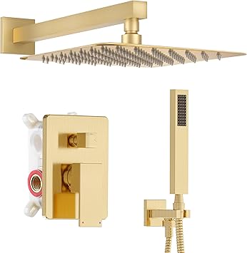 Alesco Gold Shower System, Shower Faucet Set, 10-Inch High-Pressure Rainfall Shower Heads with Handheld Spray Combo, Shower Faucet Include Shower Valve and Trim Kit, Brushed Gold
