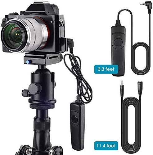3.3ft Shutter Release Remote Control with 11.4ft Extension Cable 2.5mm, AFUNTA RS-60E3 Wired Remote Control Switch Cord Replacement Compatible 70D 100D 1200D Digital Camera DSLR