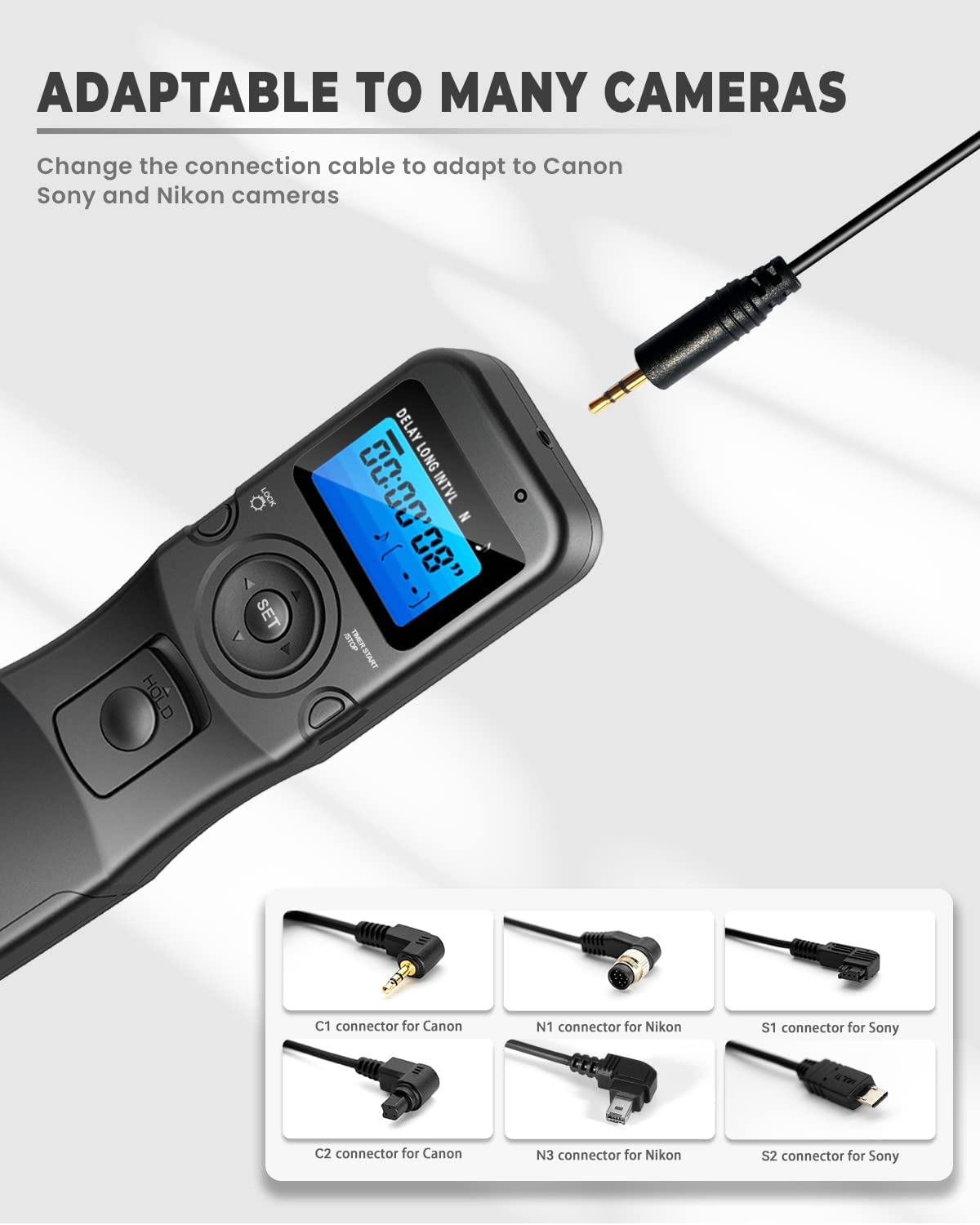 Digital Timer Remote Shutter Release Trigger Intervalometer for Canon EOS Rebel T6 T7 80D 70D 60D 60Da 77D T7i T6i T6s SL2 SL1 T5 T3 T5i T4i T3i T2i EOS R M6 M5 Cameras