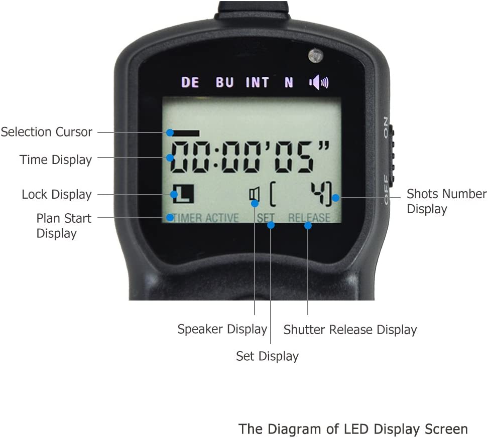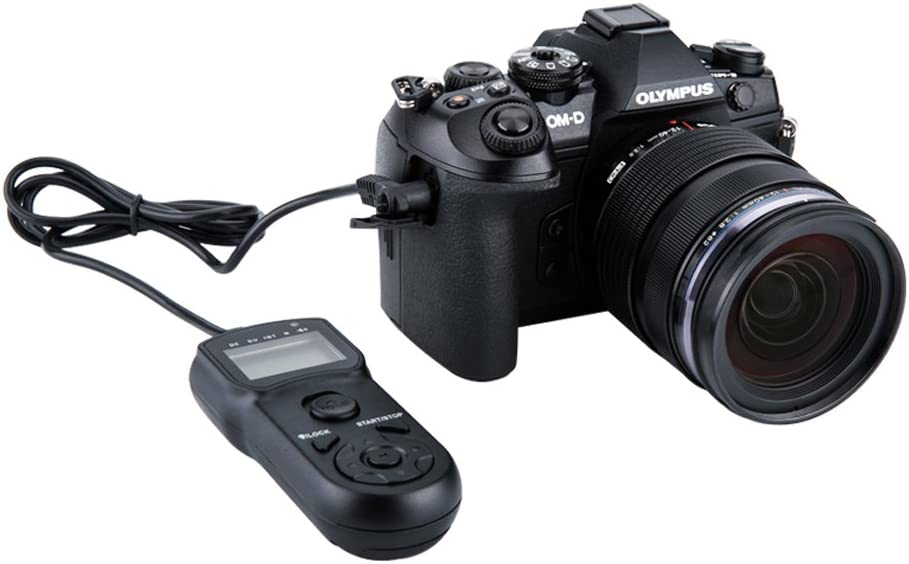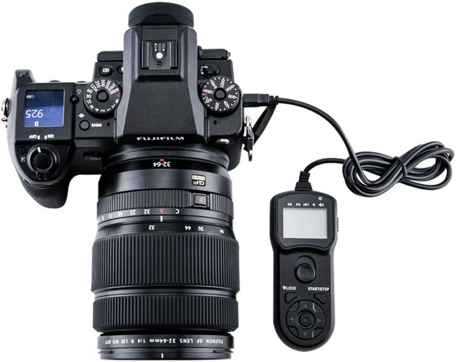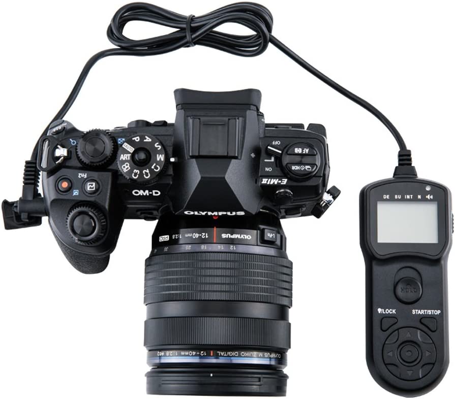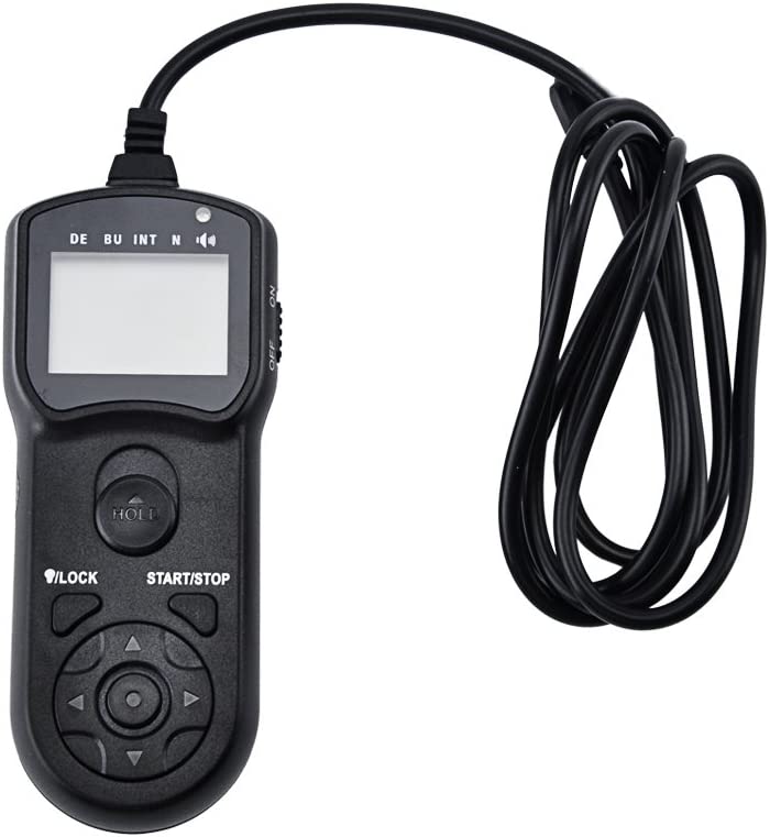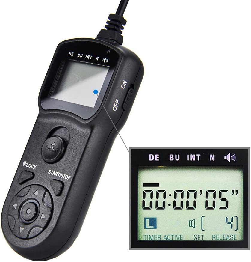 The JJC TM Series Intervalometer Timer Remote Control is a remote switch with a 2.9' (90cm) cord and a self-timer, interval timer, long-exposure timer, and exposure-count setting feature. The timer can be set anywhere from 1 second to 99 hours, 59 minutes, or 59 seconds. A dial enables you to easily enter the numeric settings with a single thumb. The LCD panel can also be illuminated.