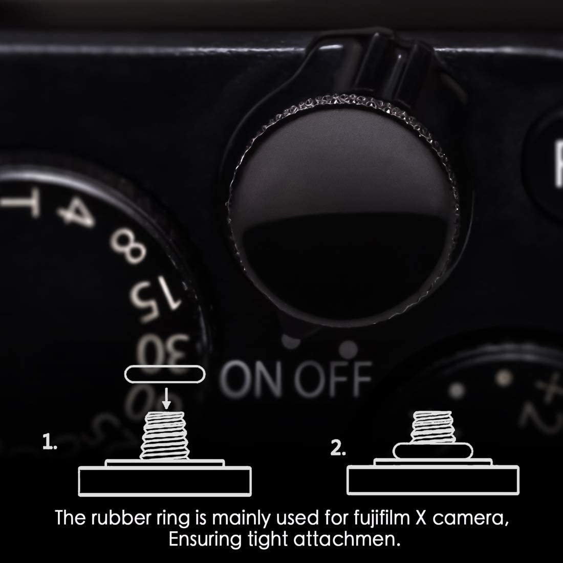 2 rubber O-rings are included, which are mainly used for Fujifilm X series cameras to ensure a tight attachment, while they are not used for Sony RX1 & RX10 series cameras. Other brand cameras do not need the rubber O-ring, you can add a small piece Teflon Thread Seal Tape on the button screw, it will stay firmly on the camera.(not included in the package).