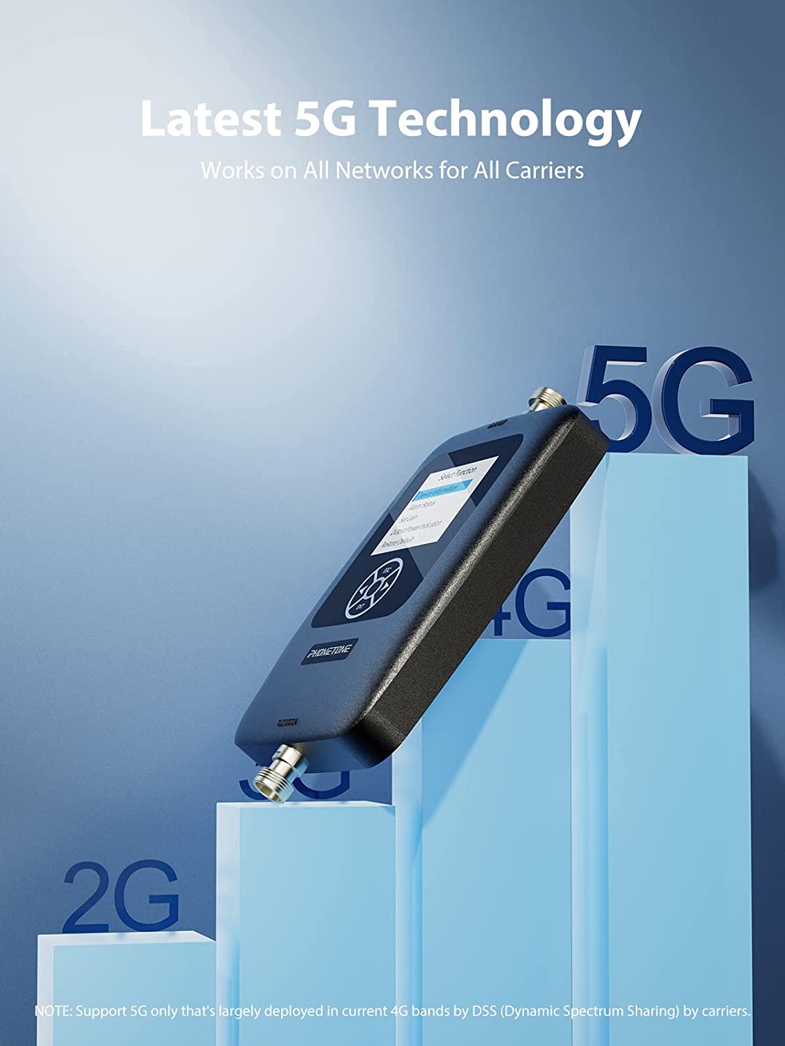 • 【Support All Carriers】The cell phone signal boosters enhance 5G, 4G LTE, 3G & GSM signals for All US Carriers - Verizon, AT&T, T-mobile, U.S. Cellular and more. Support 5G only that's largely deployed in current 4G bands (band 2, 4, 5, 12, 13 and 17) .
