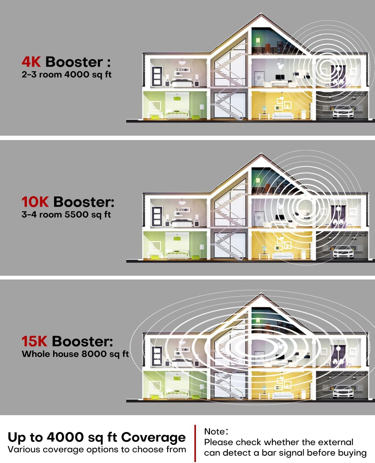 • 📶 【𝐂𝐞𝐥𝐥 𝐁𝐨𝐨𝐬𝐭𝐞𝐫 𝐟𝐨𝐫 𝐇𝐨𝐦𝐞】Hiboost cell phone booster enhances the weak signal in your home, office, shop, metal building 100x. the Cell Booster covers up to 4,000 sq. ft for 2-3 rooms. Enjoy better talk, text, and stream, Friendly to multi-room and multi-user.