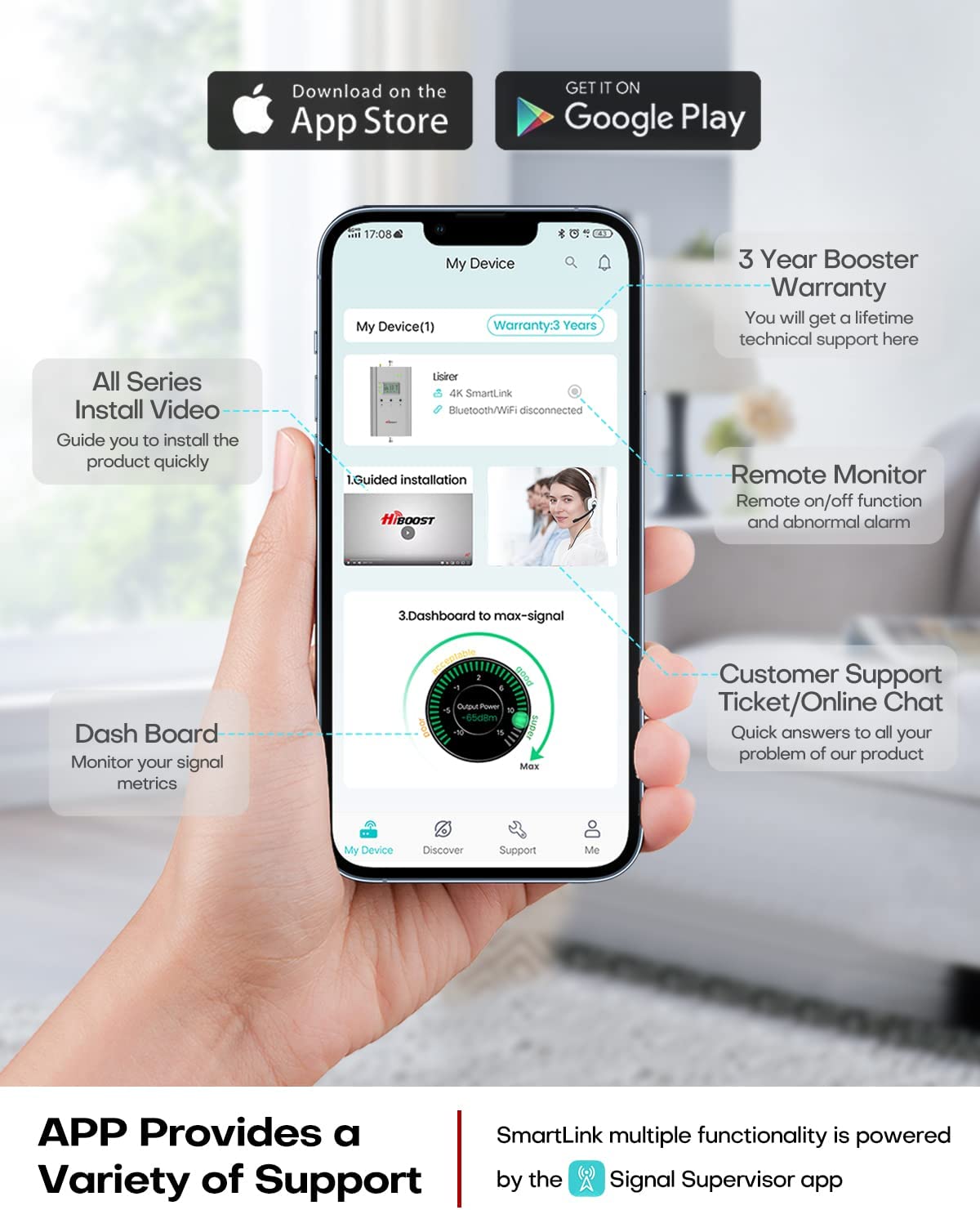 • 📶 【𝐄𝐚𝐬𝐲 𝐚𝐧𝐝 𝐓𝐨𝐨𝐥-𝐟𝐫𝐞𝐞 𝐈𝐧𝐬𝐭𝐚𝐥𝐥𝐚𝐭𝐢𝐨𝐧】HiBoost App & LCD helps fine tune best output and monitor how strong the signal is and troubleshoot issues; No drills necessary since the window wire can be fed through the window bottom to connect the outdoor antenna and the cell signal booster; Easily install your booster with the help of step-by-step videos and instructions through our App.