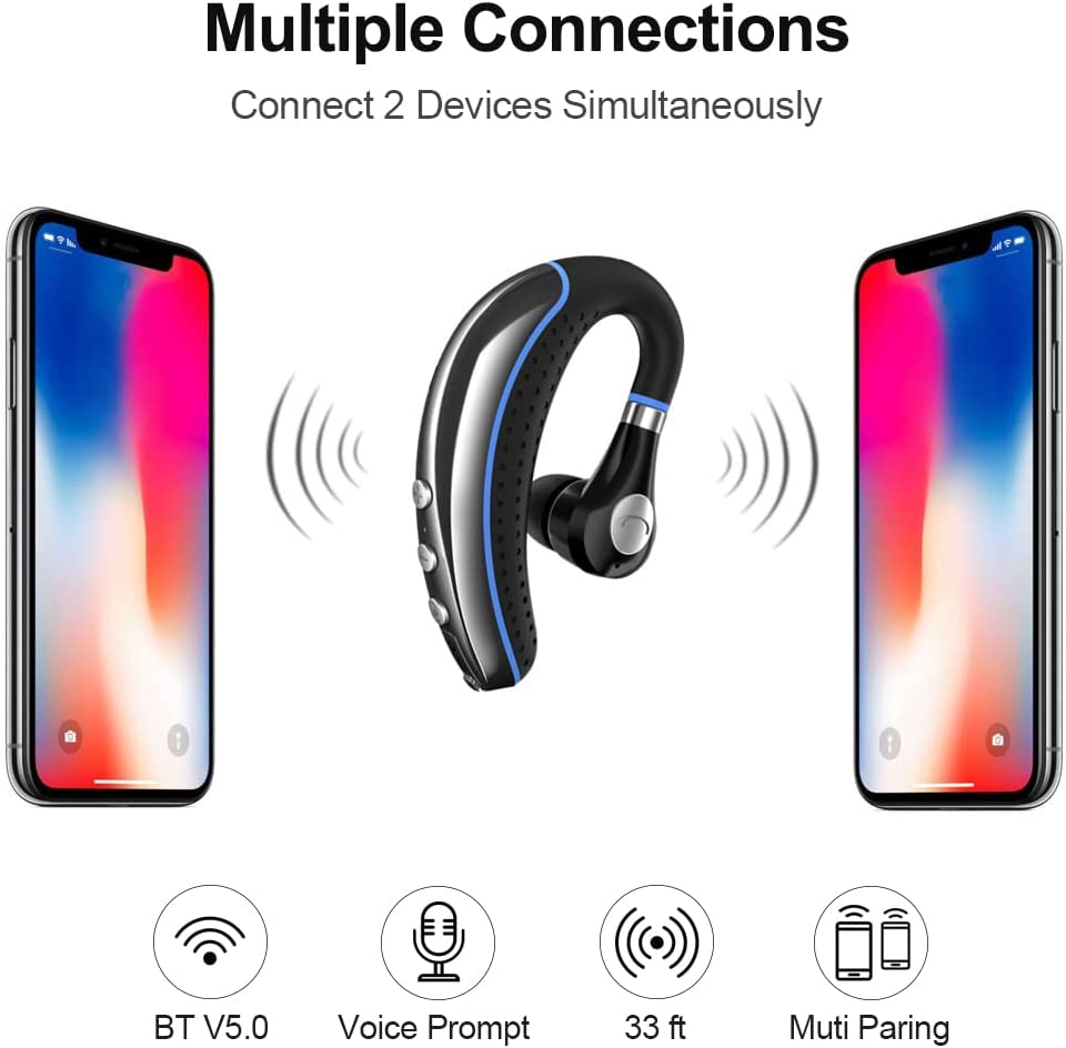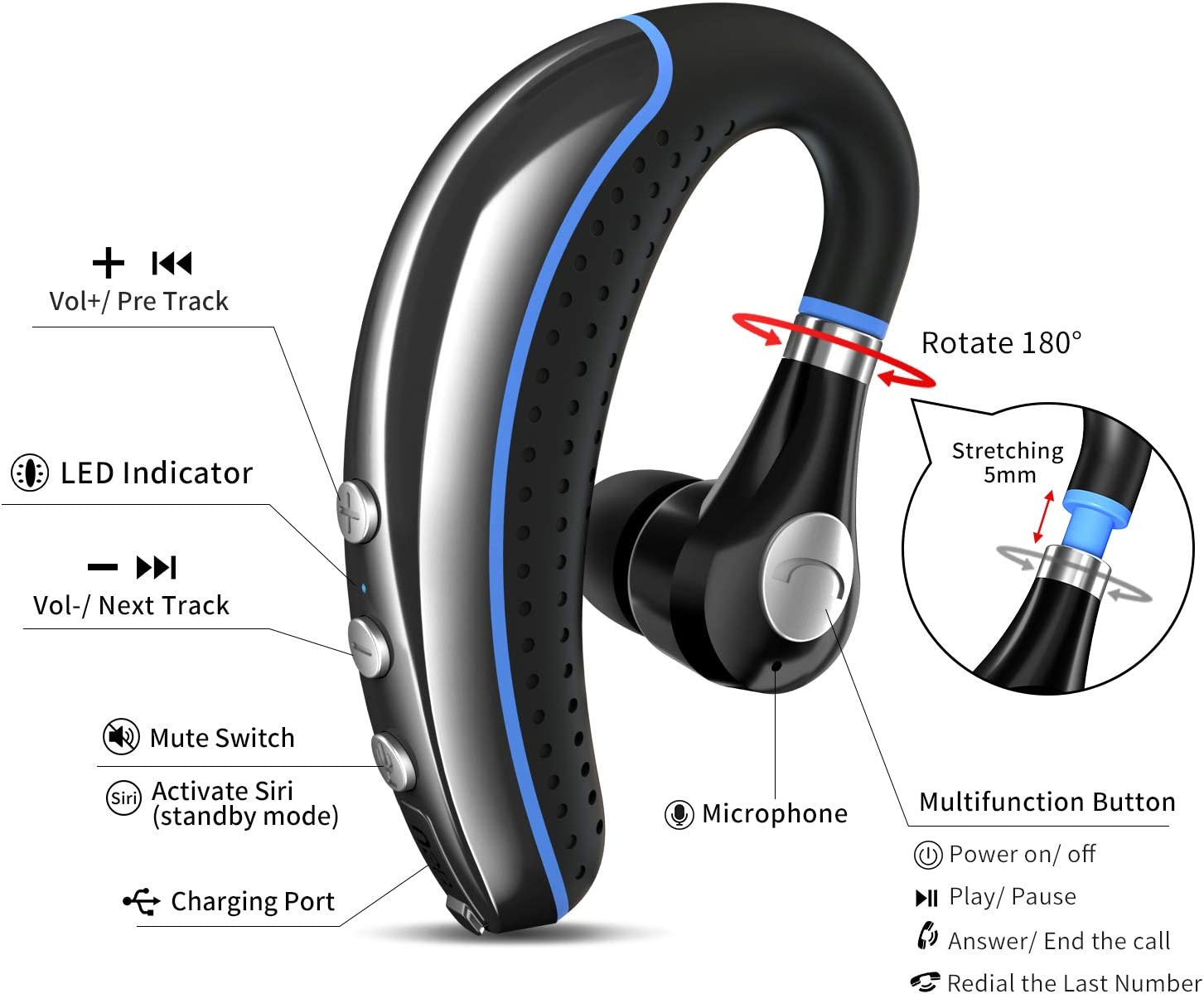 • SMART FUNCTION & LONG BATTERY LIFE: Our Bluetooth Earpiece supports Siri voice prompt and mute function, one key to power on and enter pairing mode, 1 to 2 connection. Super long battery life, 180 HOURS standby time, 9 HOURS talking time, 8 HOURS music playing time after full charge. With 33ft (10meters) Bluetooth working range.