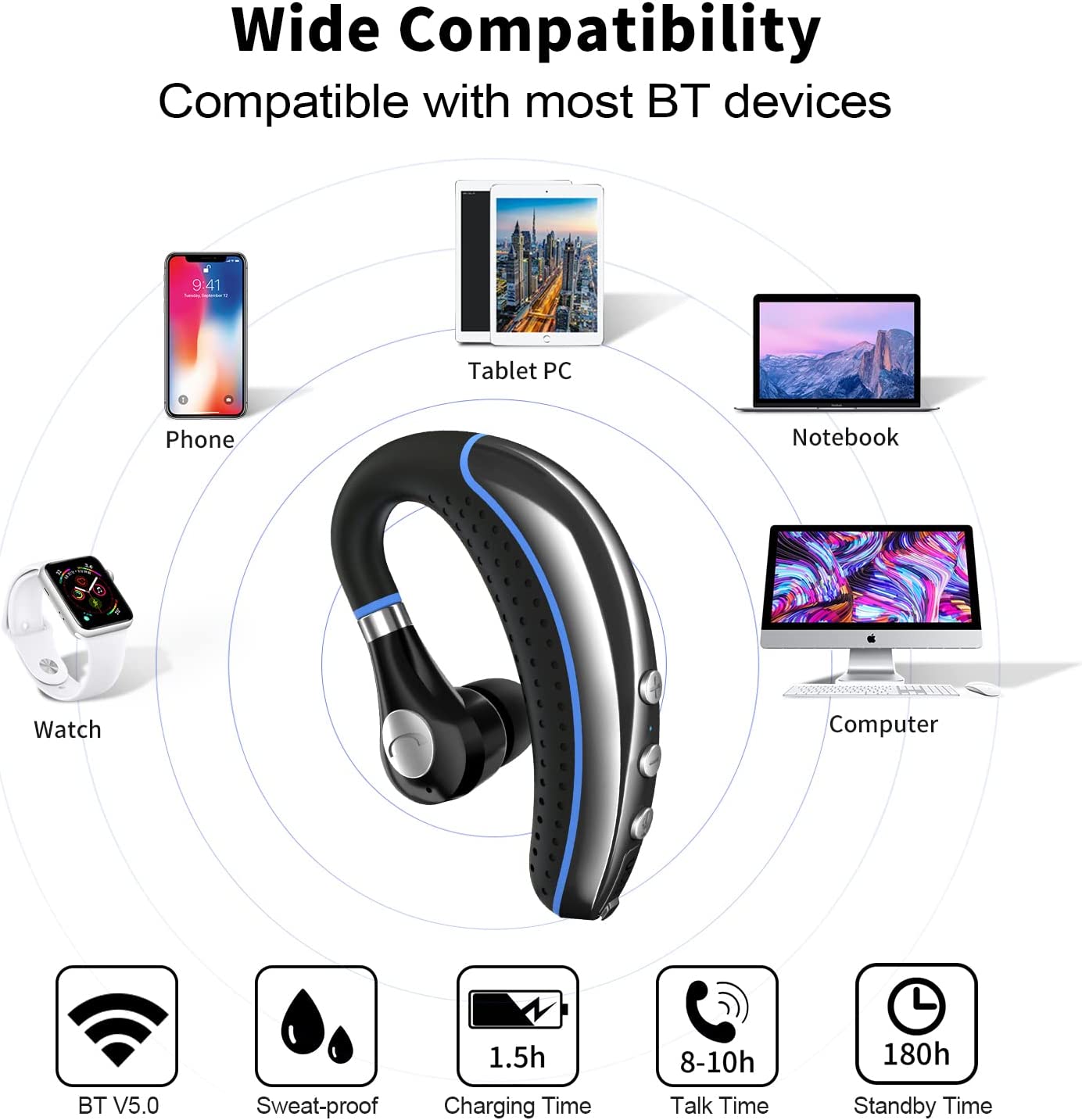 • UNIVERSAL COMPATIBLE: Bluetooth Headset V5.0 with mic provide a stable call environment for you, and fast pairing with smart phones and tablets.