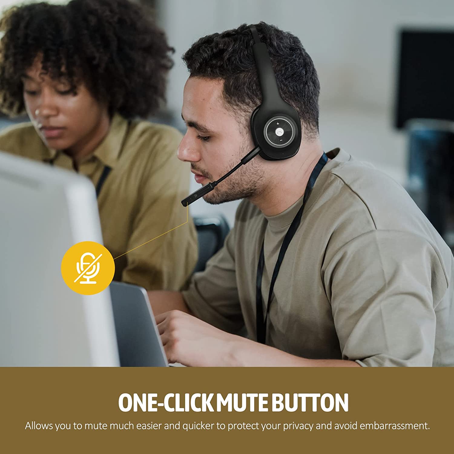 • 🤩【Effortless Controls & Mute Button】 Conveniently placed and large buttons make wireless Bluetooth headset super easy to access, so you don't need to think twice before clicking the right button or worry about clicking the wrong button. A dedicated mute button on the mic of the wireless headset for computer provides extra convenience on conversations. Bluetooth headset for computer supports Siri and voice assistants, giving you full control over your phone calls and music without lifting a finger.