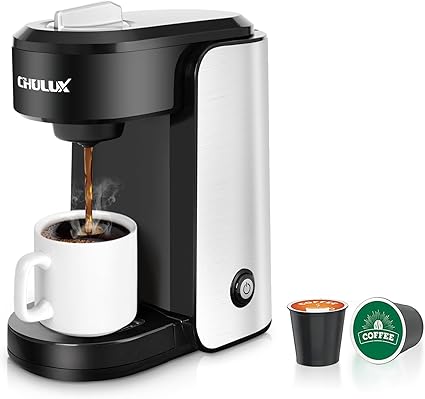 CHULUX Single Serve Coffee Maker | 1000 Watts | Stainless Steel | Capsule, Ground Coffee | Graduated Water Tank | One Button Operation