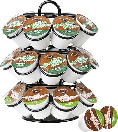 K Cup Holder, Coffee Pod Holder for Keurig, Coffee Pod Organizer Carousel for K-cups, Compatible with Keurig Pods and Dolce Gusto, Holds 27 Pods, 360-Degrees Rotating -Black