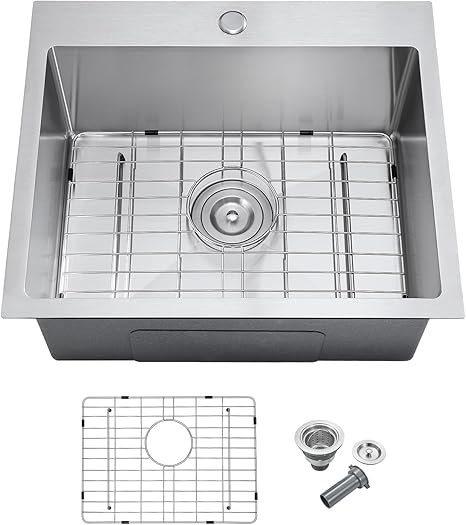 MENATT 23 Inch Drop in Kitchen Sink Brushed, Stainless Steel Single Hole Single Bowl Topmount Kitchen Sinks with Drain Strainer & Grid, D23"xW18"xH9"