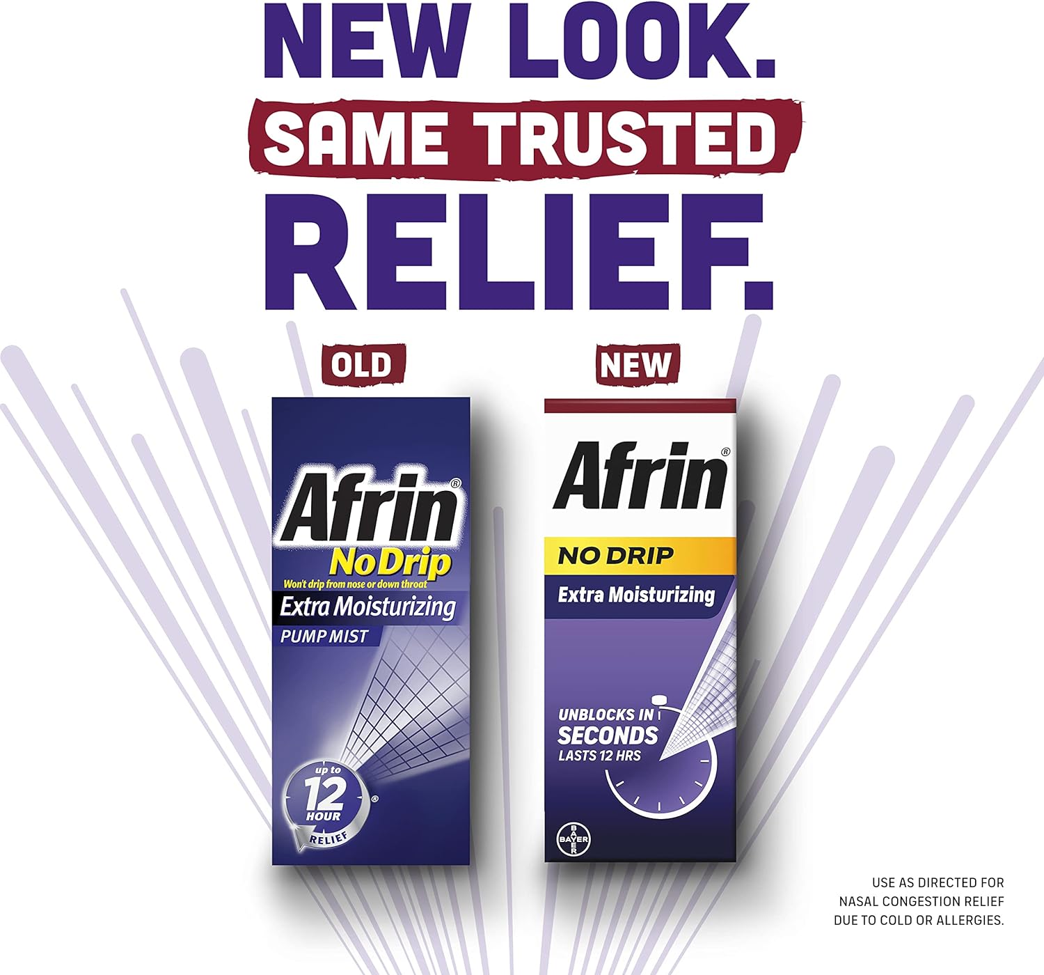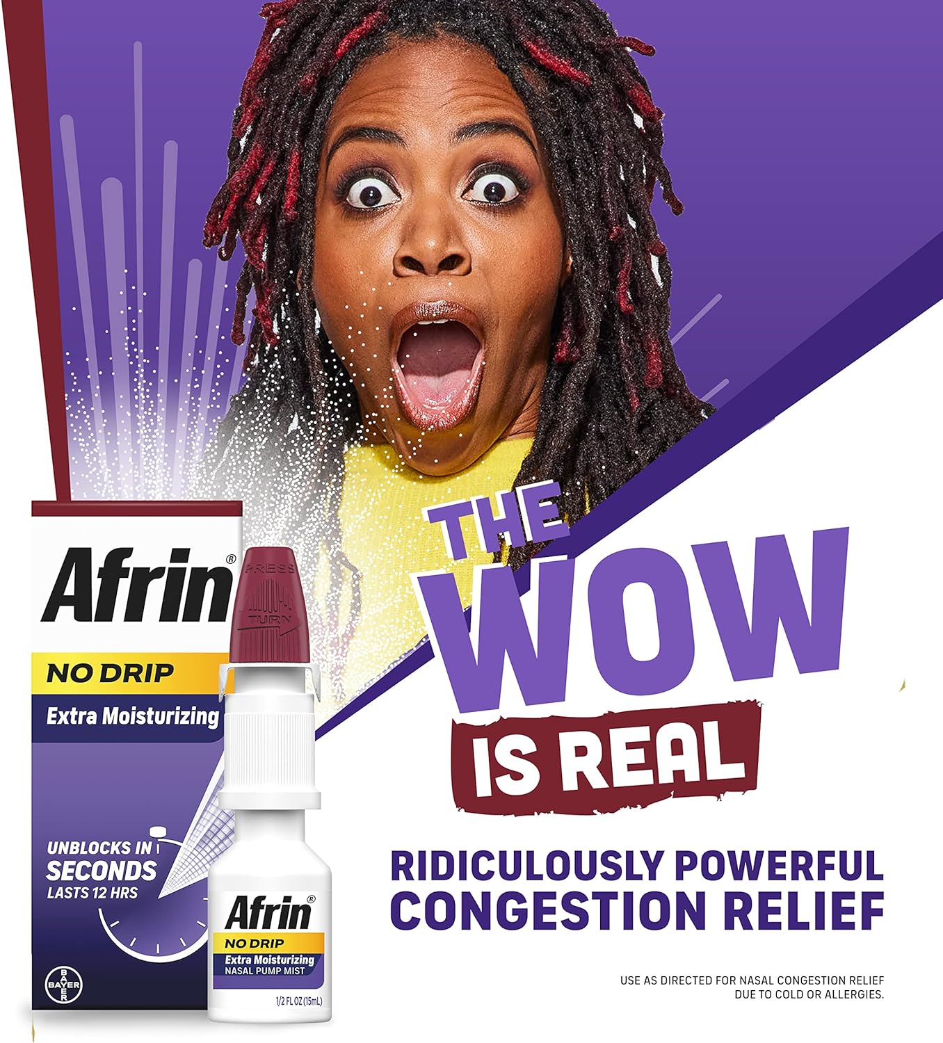 This powerful nasal spray is designed specifically to provide sinus relief from nasal congestion and stuffiness, helping you breathe more easily and comfortably throughout the day. With its innovative no-drip formula, Afrin No Drip Extra Moisturizing Pump Nasal Mist ensures that you get the full dose of medication without any messy drips or runs. Not only does this nasal decongestant relieve nose congestion, it also provides extra moisturization to soothe dry nasal passages. This makes it ideal for those who experience discomfort or irritation due to dry air or seasonal allergies with a sinus spray.