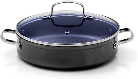 NuWave Forged Lightweight Nonstick 10.5" Grill Pan with Lid, Healthy G10 Duralon Ceramic Coated Deeper Griddle Pan Skillet, PFAS Free, Works on All Cooktops & Induction Ready