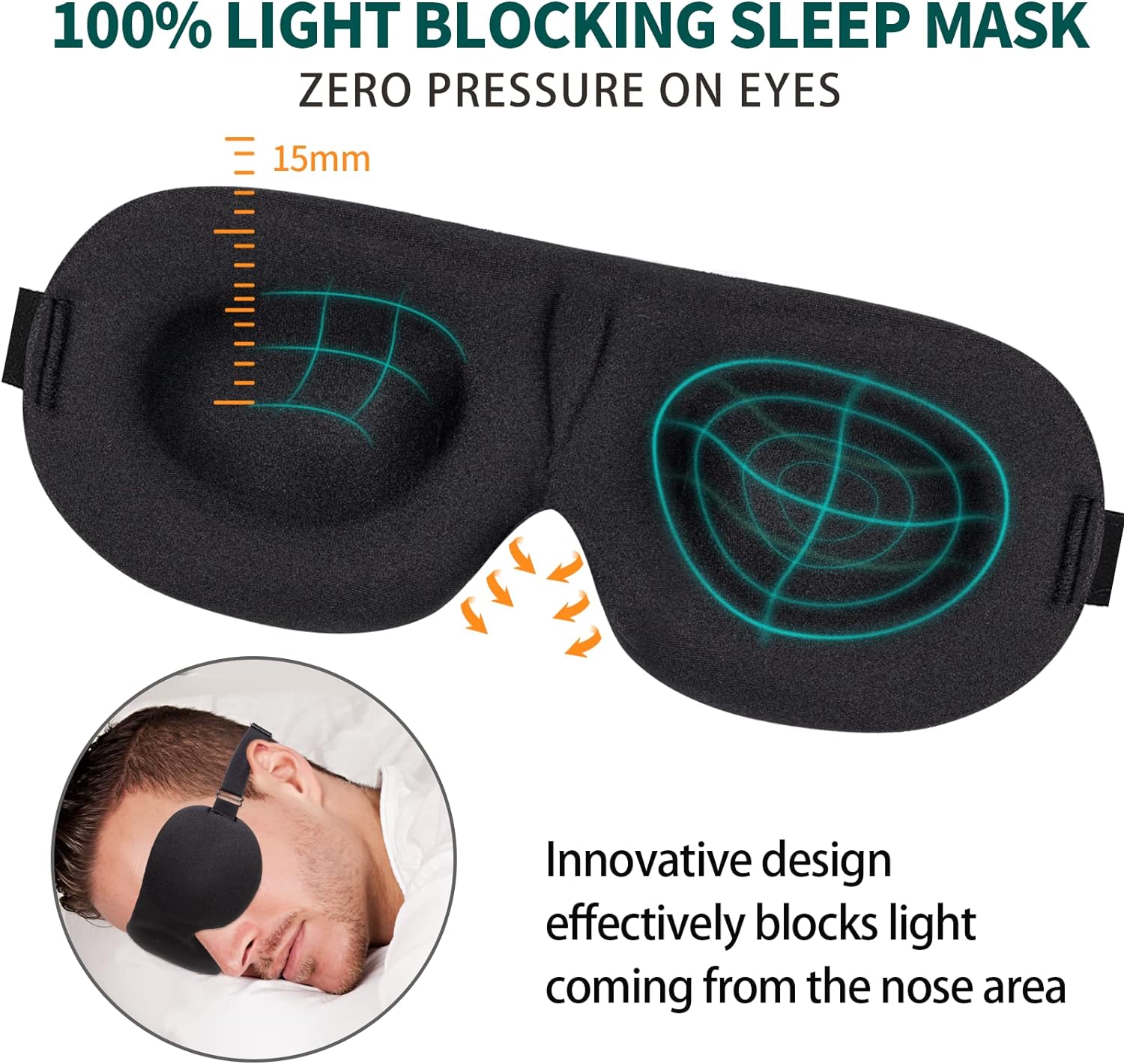 Sleep Mask for Back and Side Sleeper, 100% Block Out Light, Eye Mask Sleeping of 3D Night Blindfold, Ultralight Travel Eye Cover