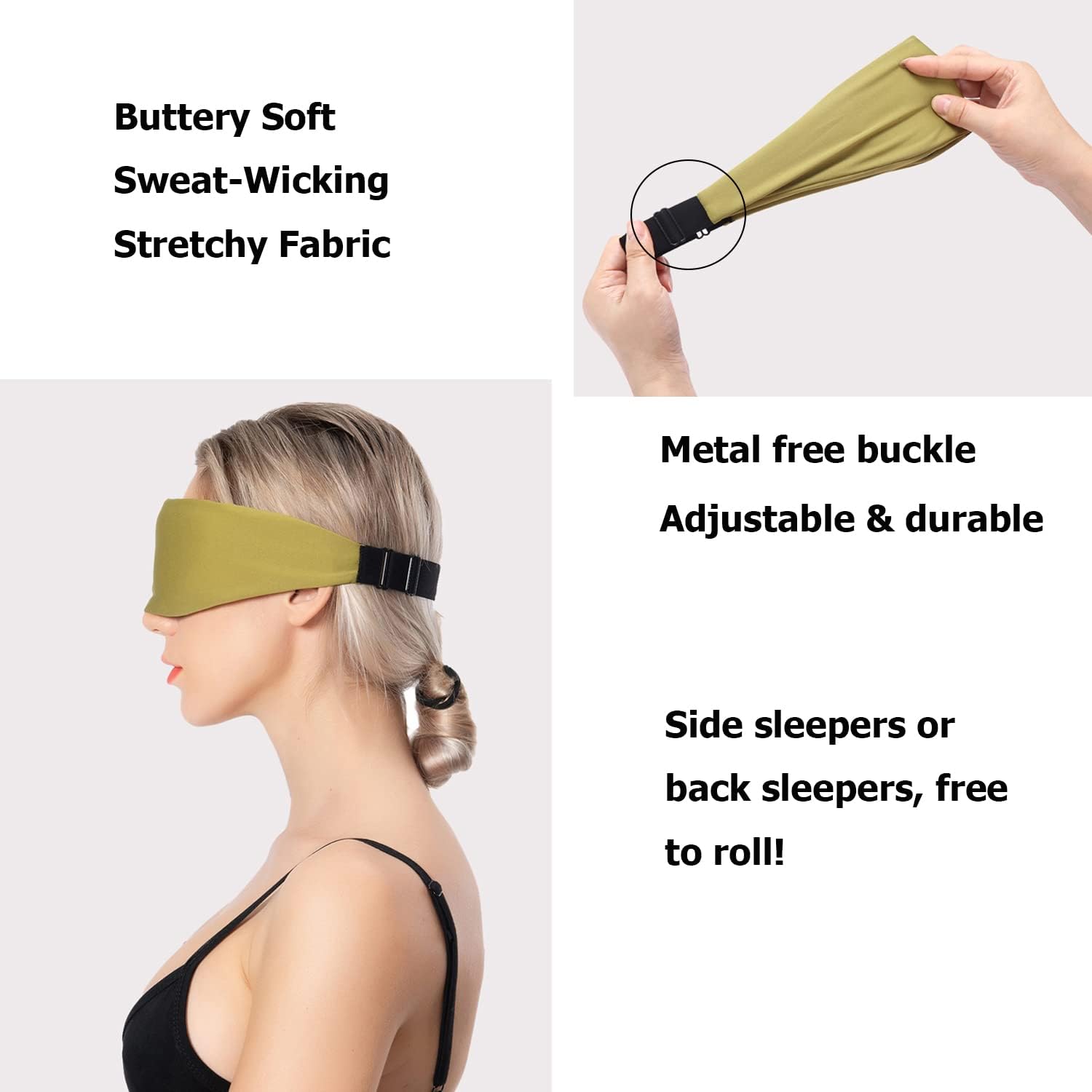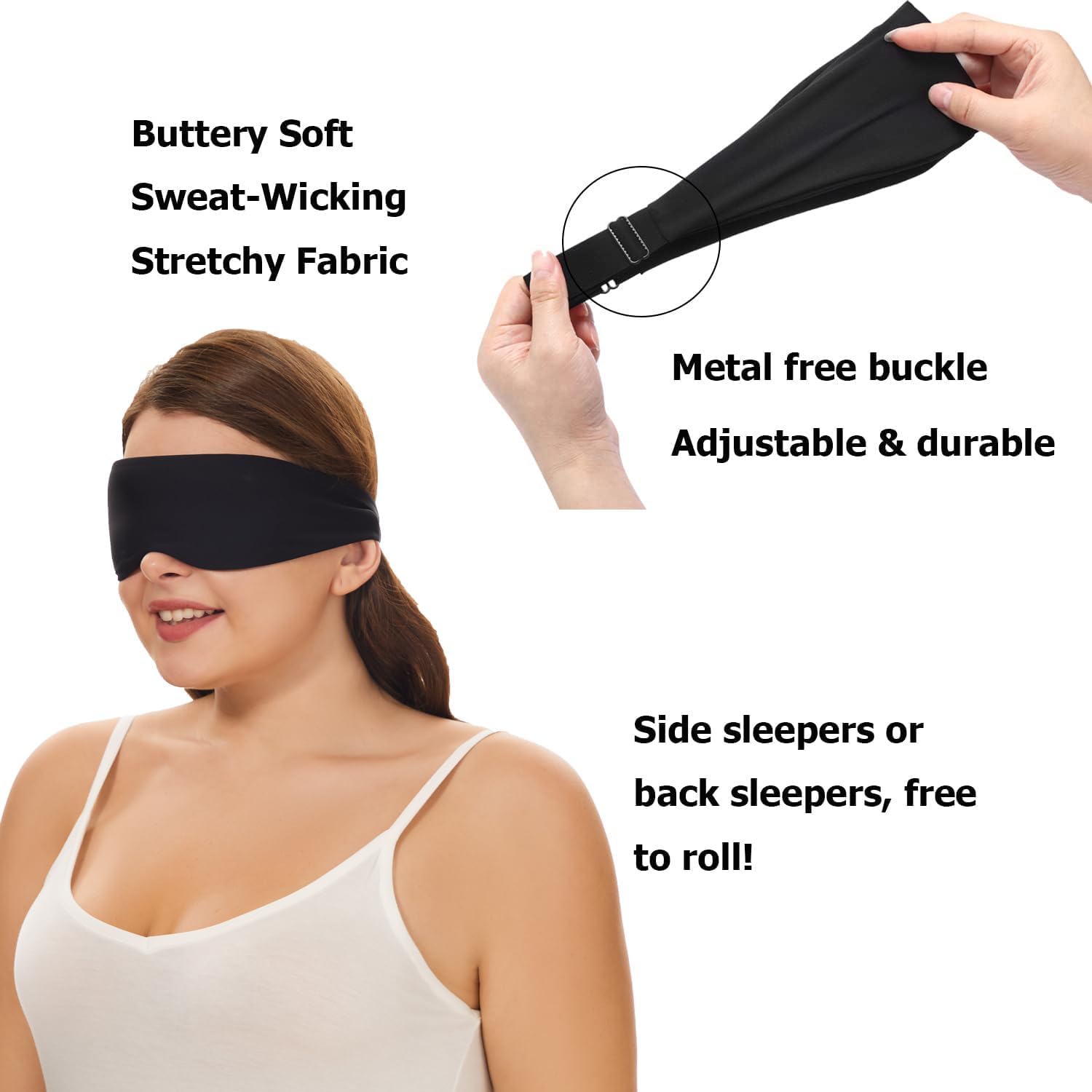 • 😴 Innovative headband design eye mask - New placement of the adjusters(non-metal) to AVOID scratch ears or irritate skin; Wide, gentle and flexible head band less prone to shift during the day or night