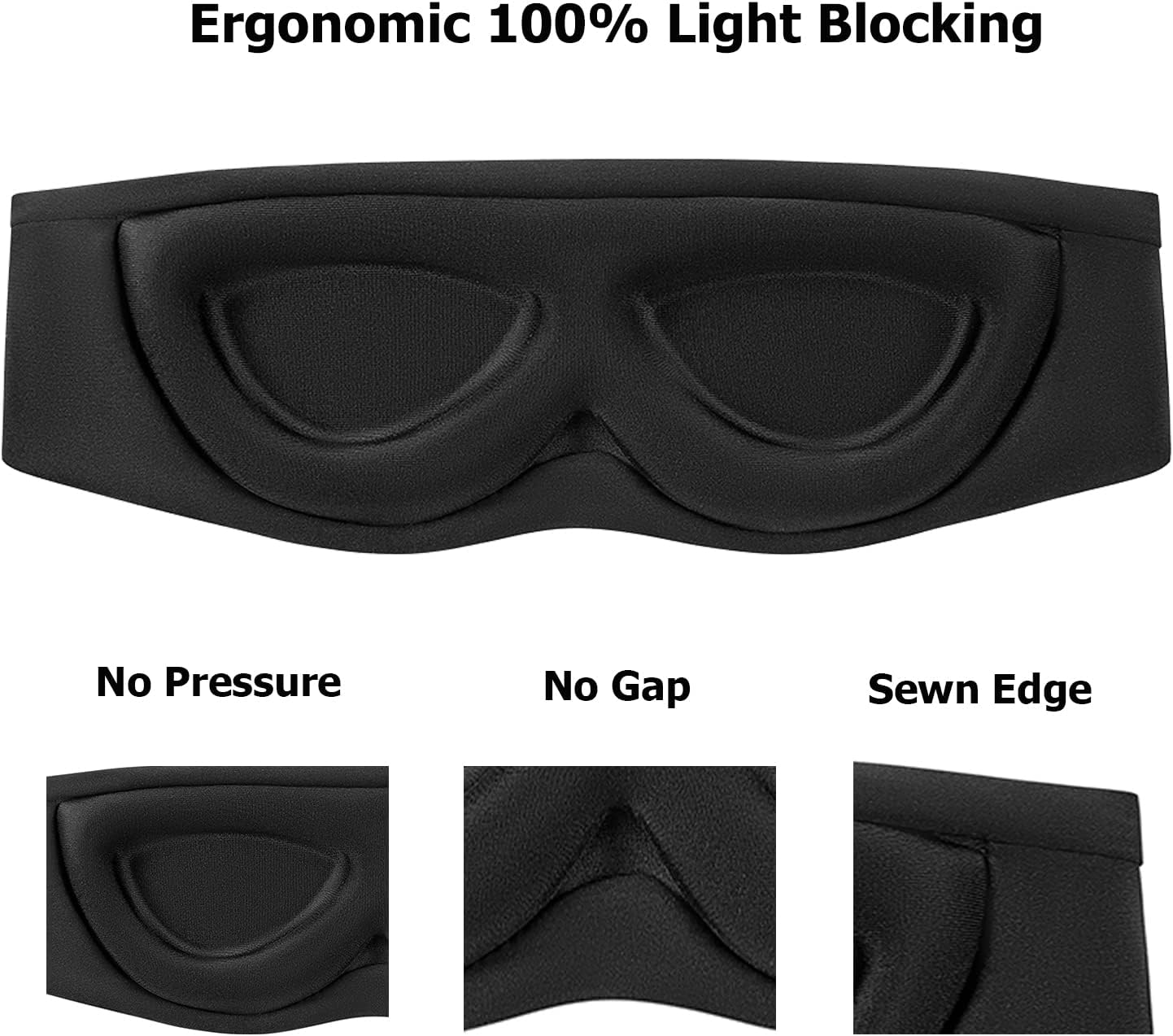 • 😴 Unique shaped eye cups & nose cutout - Never press against eyeballs, eyelashes or nose and yet create a perfect seal that blocks all light out no matter if you're a back, stomach or sensitive side-sleeper