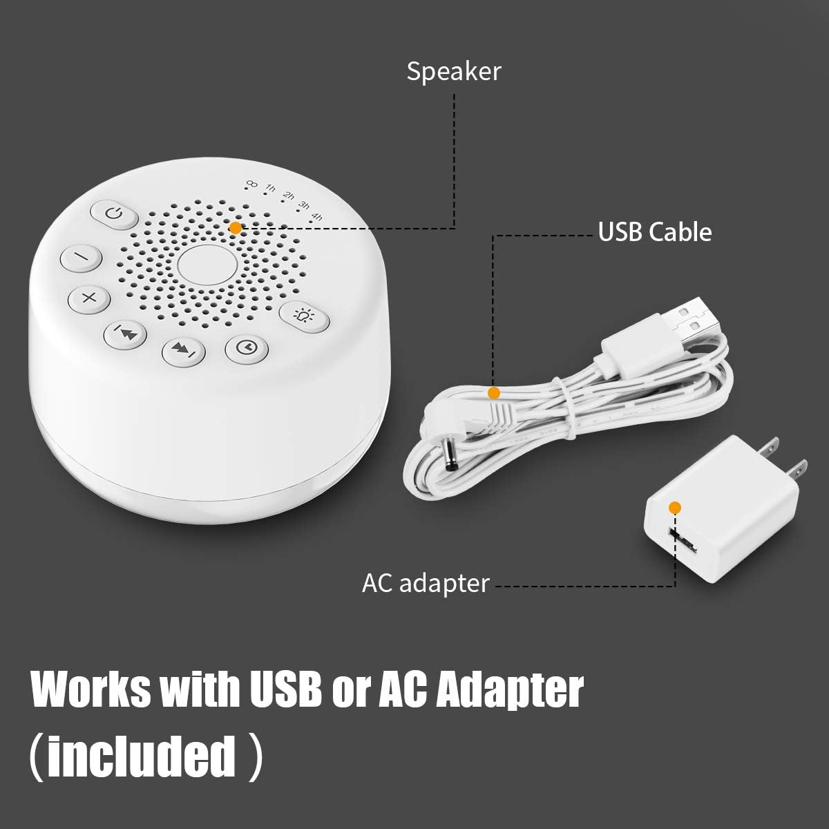 Easysleep Sound White Noise Machine with 25 Soothing Sounds and Night Lights with Memory Function 32 Levels of Volume and 5 Sleep Timer Powered by AC or USB for Sleeping Relaxation (White)
