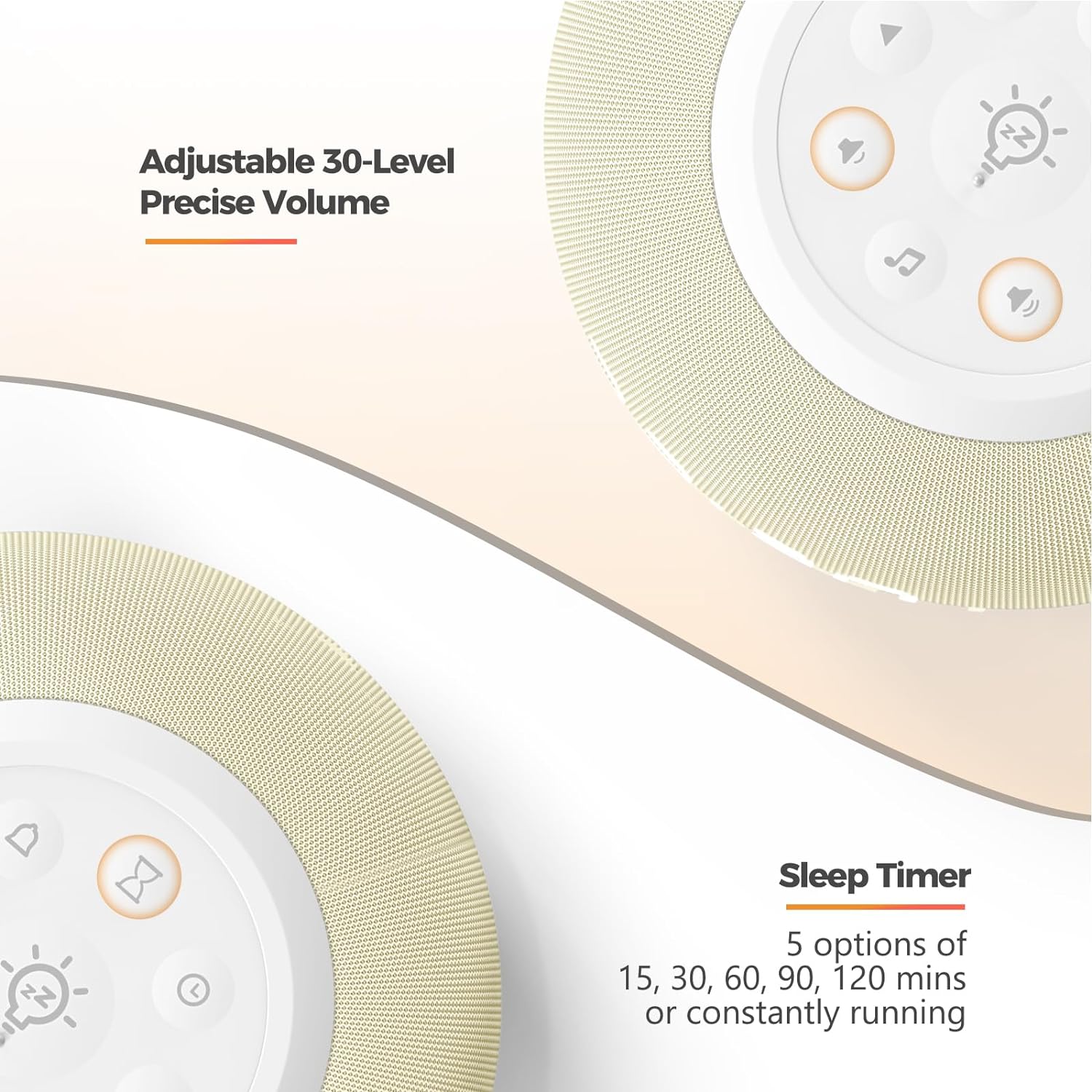 • Sleeping Better with 20 Soothing Sounds: In addition to the regular white noise, fan sound, lullaby and nature sounds(bird, ocean, summer night, thunderstorm, rain...), we have added yoga and meditation music to the latest upgrade. Fall asleep to your favorite sound, it will auto-off at your scheduled time (15 to 120 minutes or non-stop).